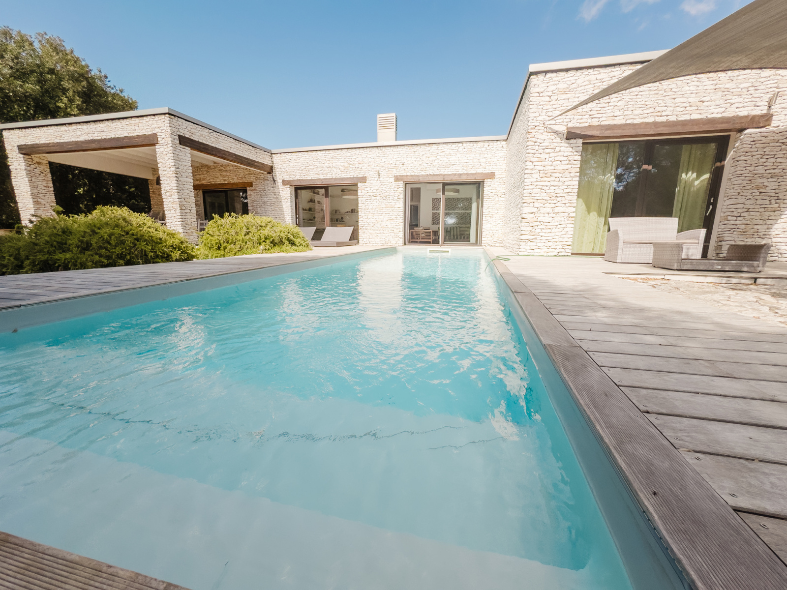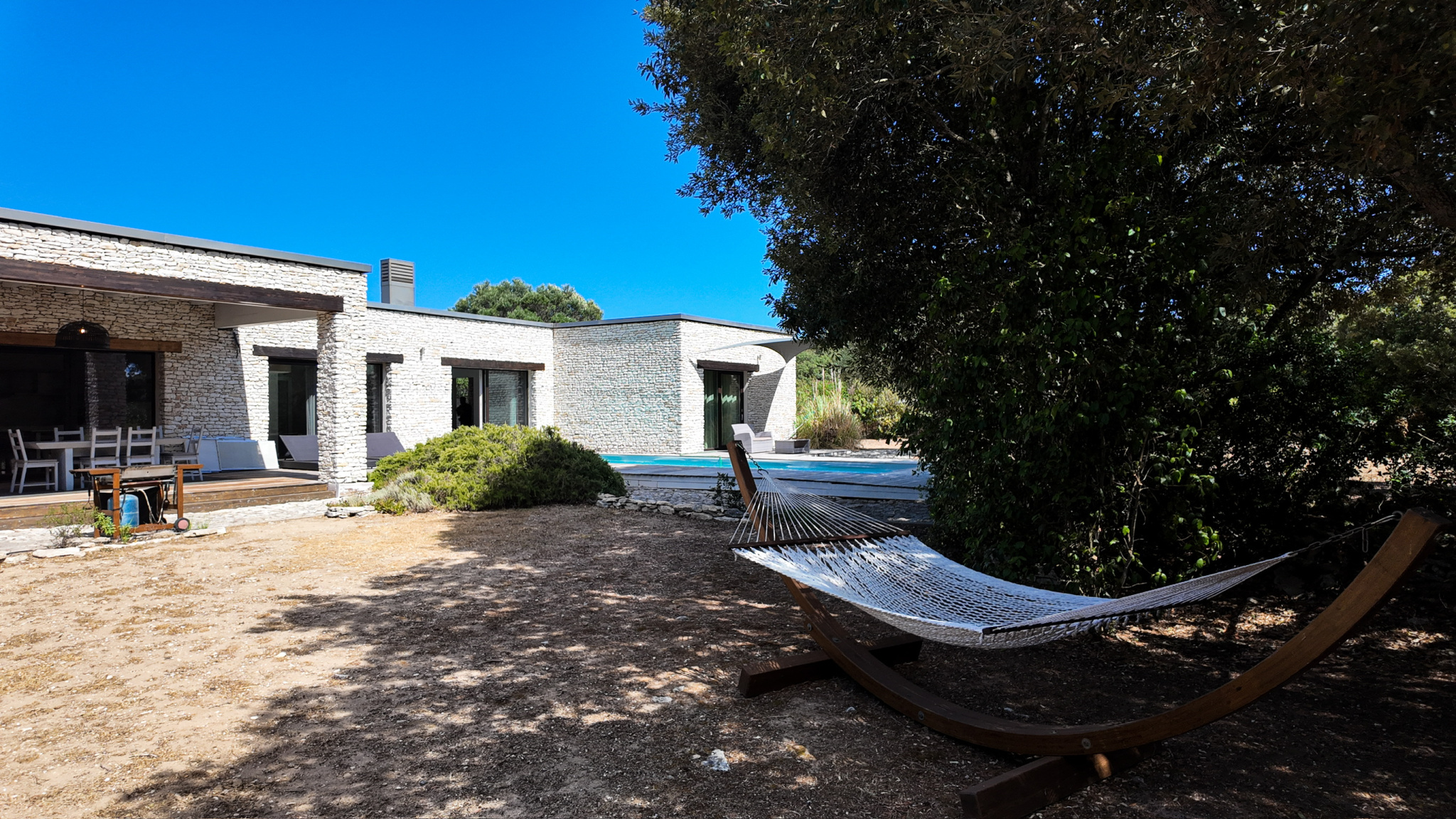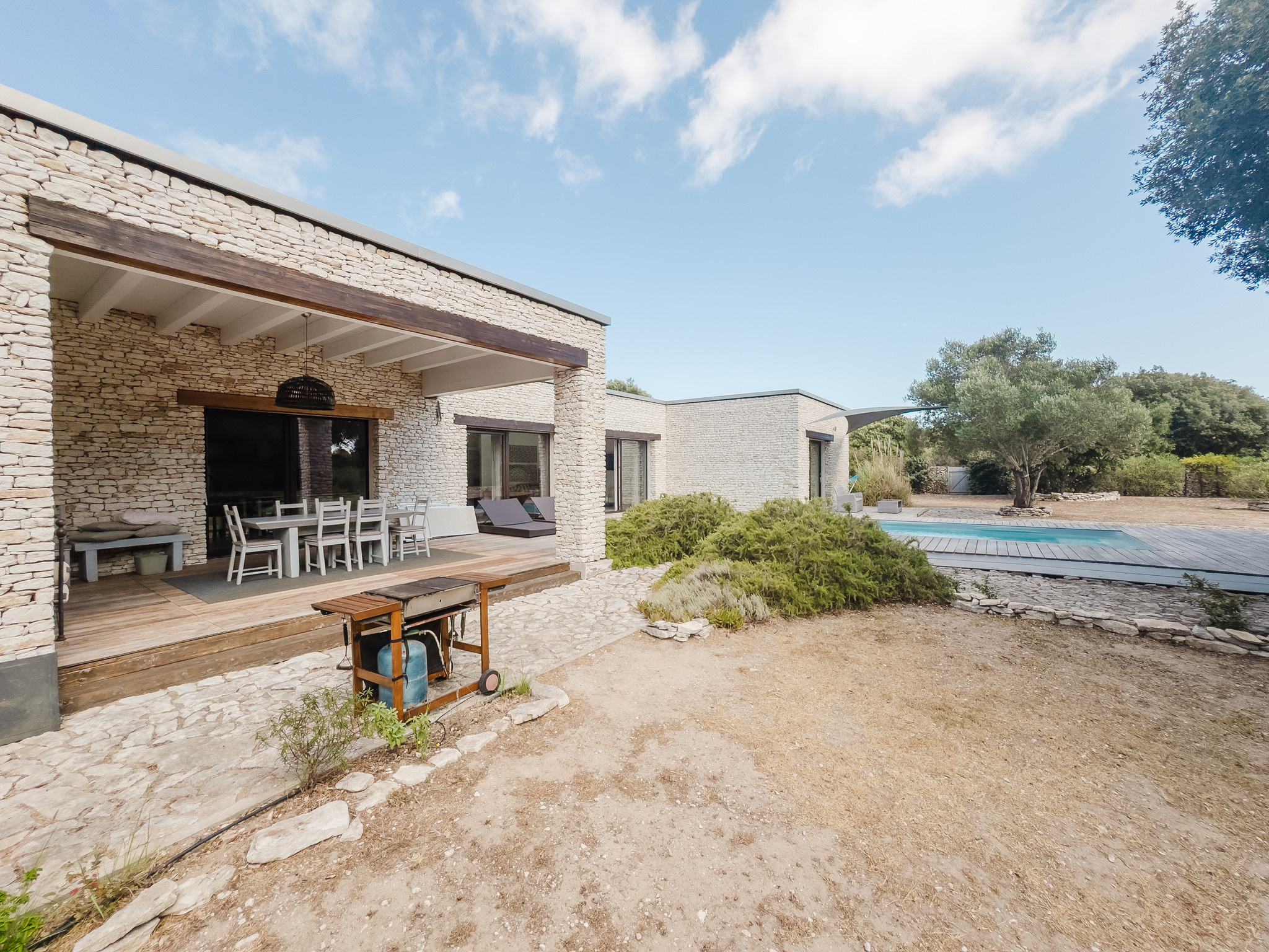 Bonifacio (20169)Cette belle villa à l'allure bohème-chic ne vous laissera pas indifférent. Recouverte de pierres de Bonifacio, son intérieur en bois clair offre de vaste volumes, tous donnant sur l'extérieur. Cette villa contemporaine de 150m2 habitables environ se prolonge sur une terrasse couverte de 30m2 où se dérouleront vos plus belles soirées d'été, à côté de la piscine.