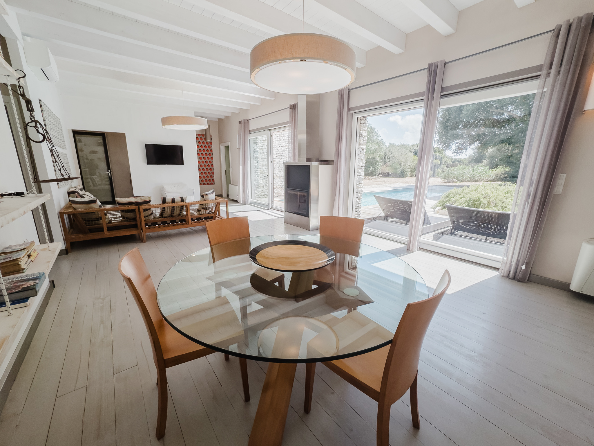 La villa se compose d'une entrée, de 4 grandes chambres dont 3 disposent de leur salle d'eau privative, d'une salle de bains/WC indépendante, d'un salon de 42,5m2 et d'une cuisine de 19m2 entièrement équipée, elle est entièrement climatisée.