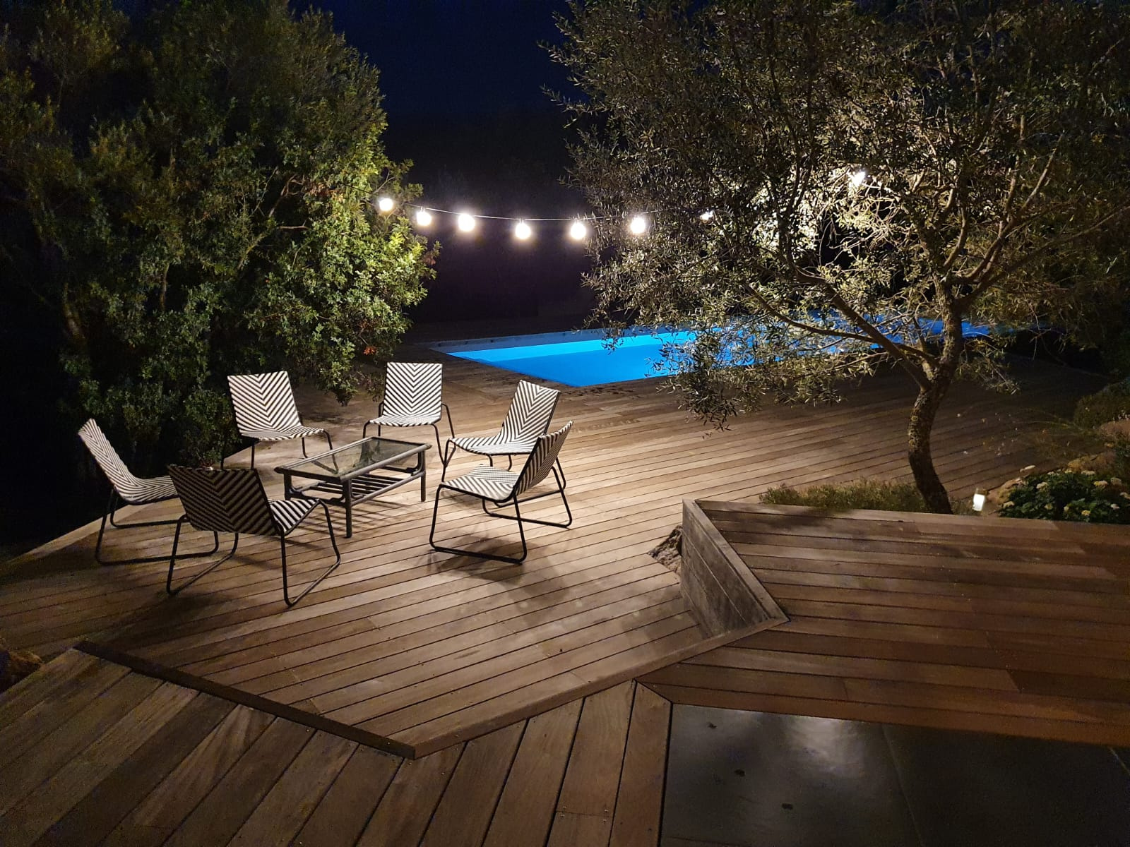 À l'intérieur, la villa se compose de six chambres spacieuses, chacune disposant de sa propre salle d'eau, garantissant confort et intimité à tous les résidents. Un salon lumineux et convivial, associé à une cuisine équipée moderne, constitue le cœur chaleureux de la maison, invitant à la détente et aux moments de convivialité en famille ou entre amis. Un WC indépendant vient compléter cet espace de vie, offrant une praticité supplémentaire. À l'extérieur, une magnifique piscine de dimensions généreuses (4,50m x 13m) constitue l'attraction principale, offrant fraîcheur et détente lors des chaudes journées estivales. Une grande terrasse en bois d'Ipe entoure la piscine, offrant un espace idéal pour se prélasser au soleil ou organiser des repas en plein air en admirant la vue panoramique sur les environs.