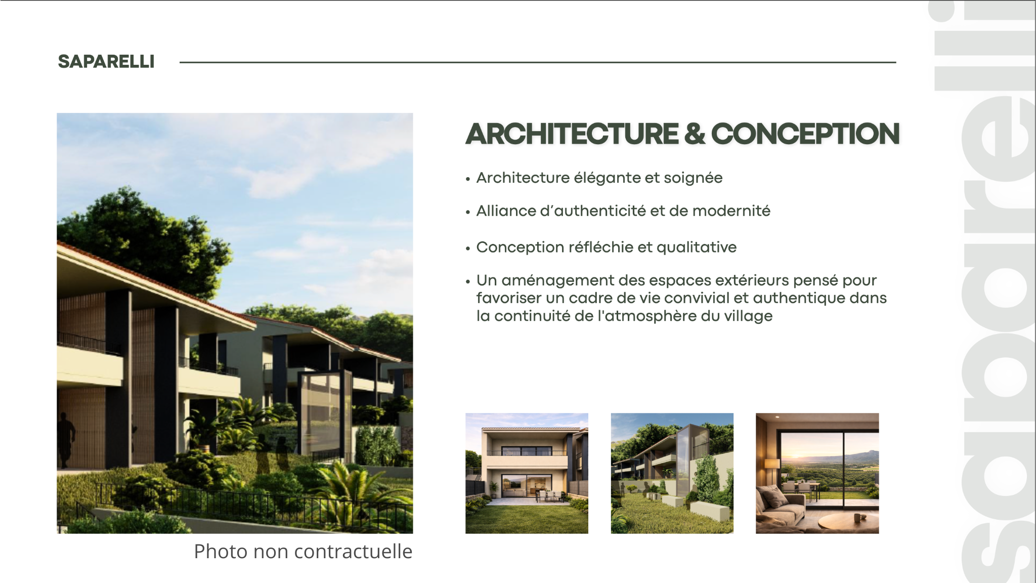 Figari (20114)Idéalement située à Figari, entre Porto-Vecchio et Bonifacio, la Résidence Saparelli propose un programme immobilier neuf au cœur de l’Extrême-Sud Corse, dans un environnement privilégié offrant de superbes vues dégagées sur la vallée et les sommets de Cagna. Cette résidence intimiste à taille humaine se compose de seulement 6 bâtiments de faible hauteur, alliant architecture contemporaine, esprit village et qualité de vie.
