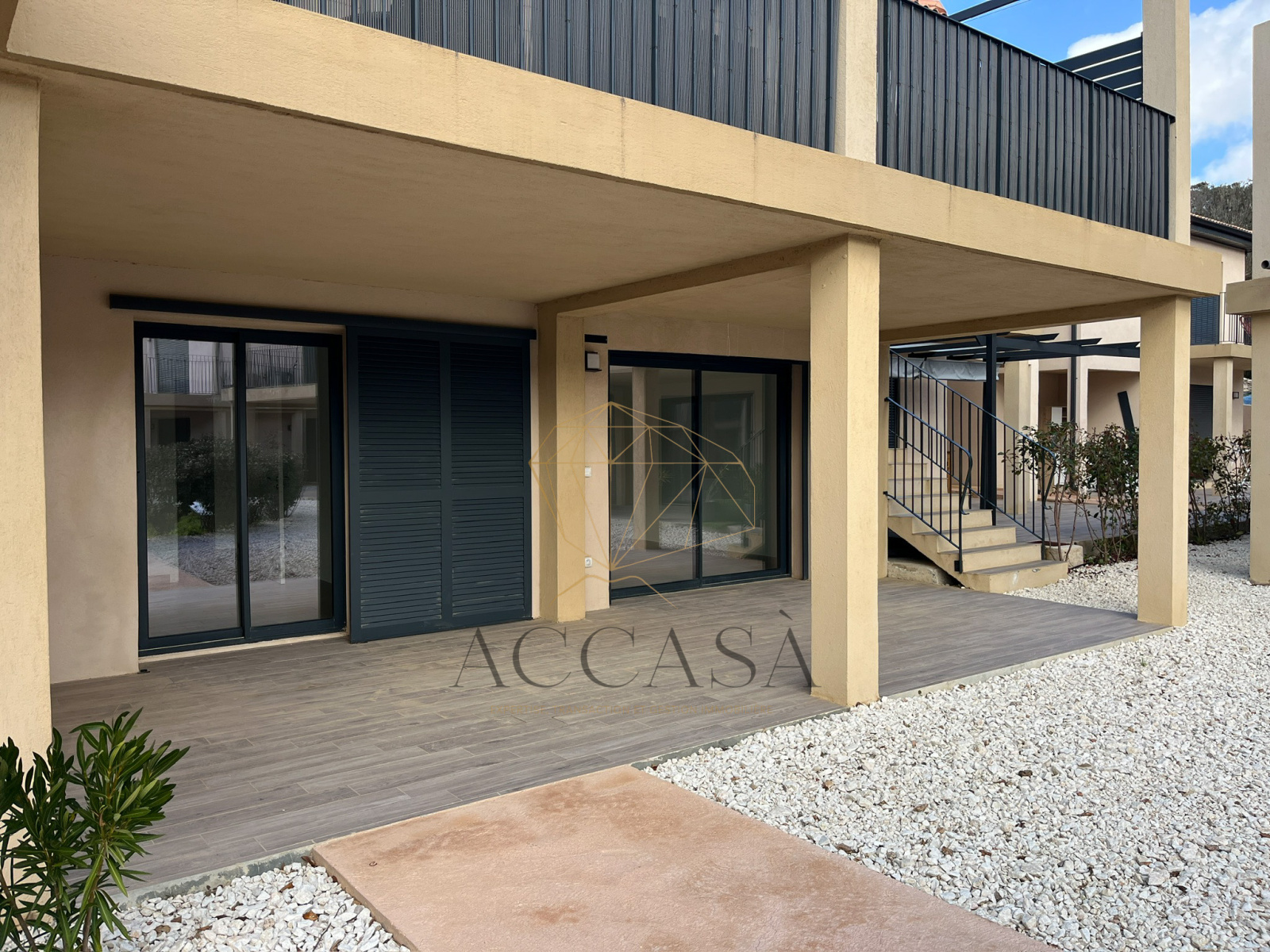 La résidence est idéalement située à l’entrée de Bonifacio, dans un environnement calme, à seulement 15 minutes de l’aéroport de Figari, 6 minutes du port de Bonifacio, 9 minutes des plages. Une voie piétonne permet de rejoindre Bonifacio à pied.