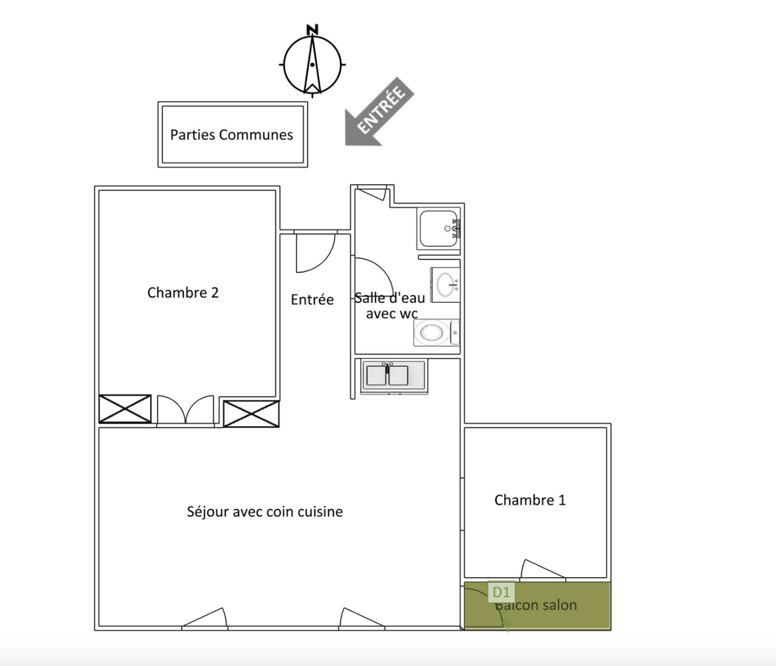 L’intérieur de l’appartement dévoile deux chambres confortables ainsi qu’une salle d’eau avec WC. Chaque détail a été soigneusement conçu pour maximiser votre confort, du double vitrage aux nombreux rangements sur mesure, en passant par la climatisation dans le salon.