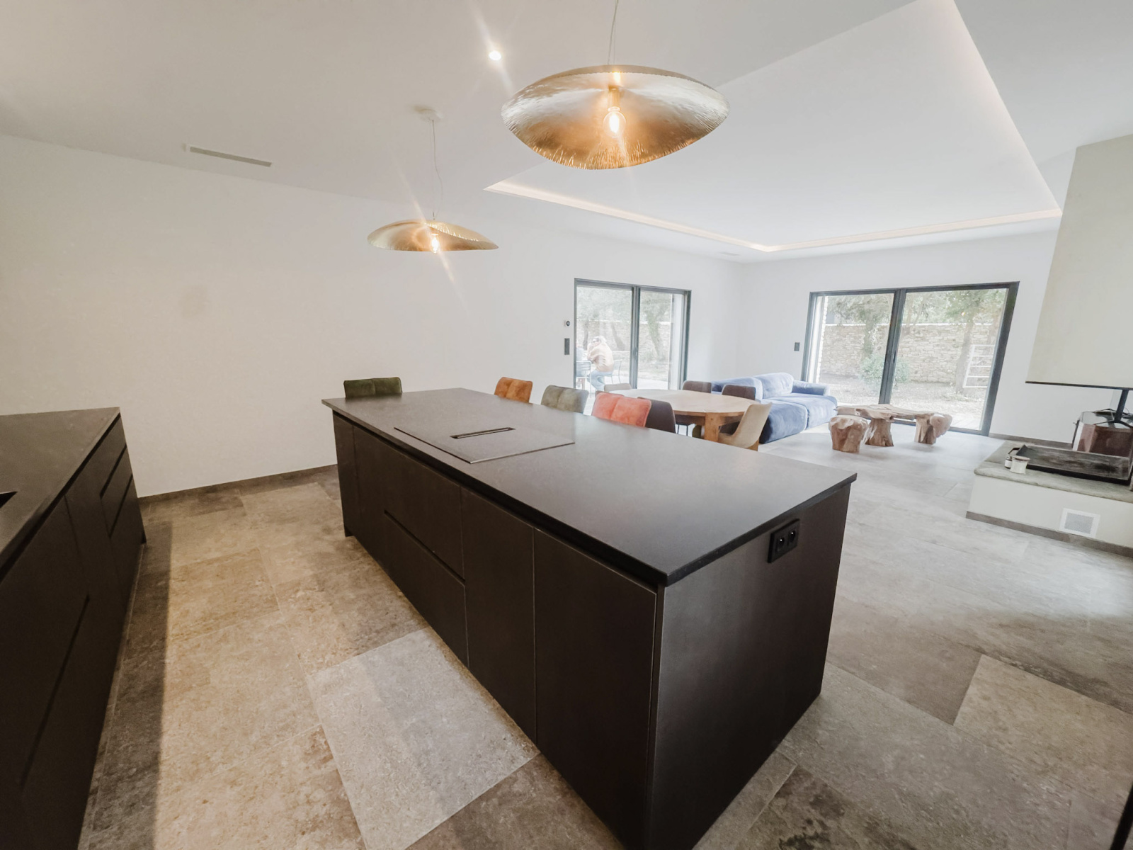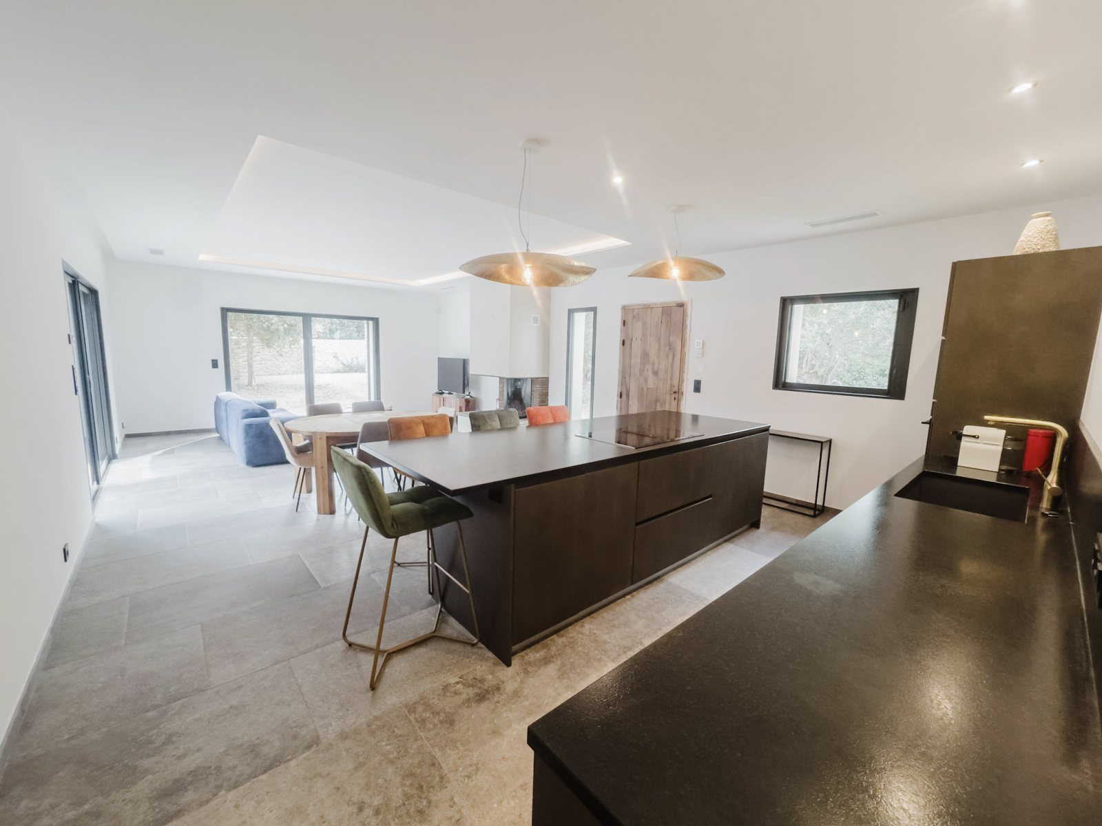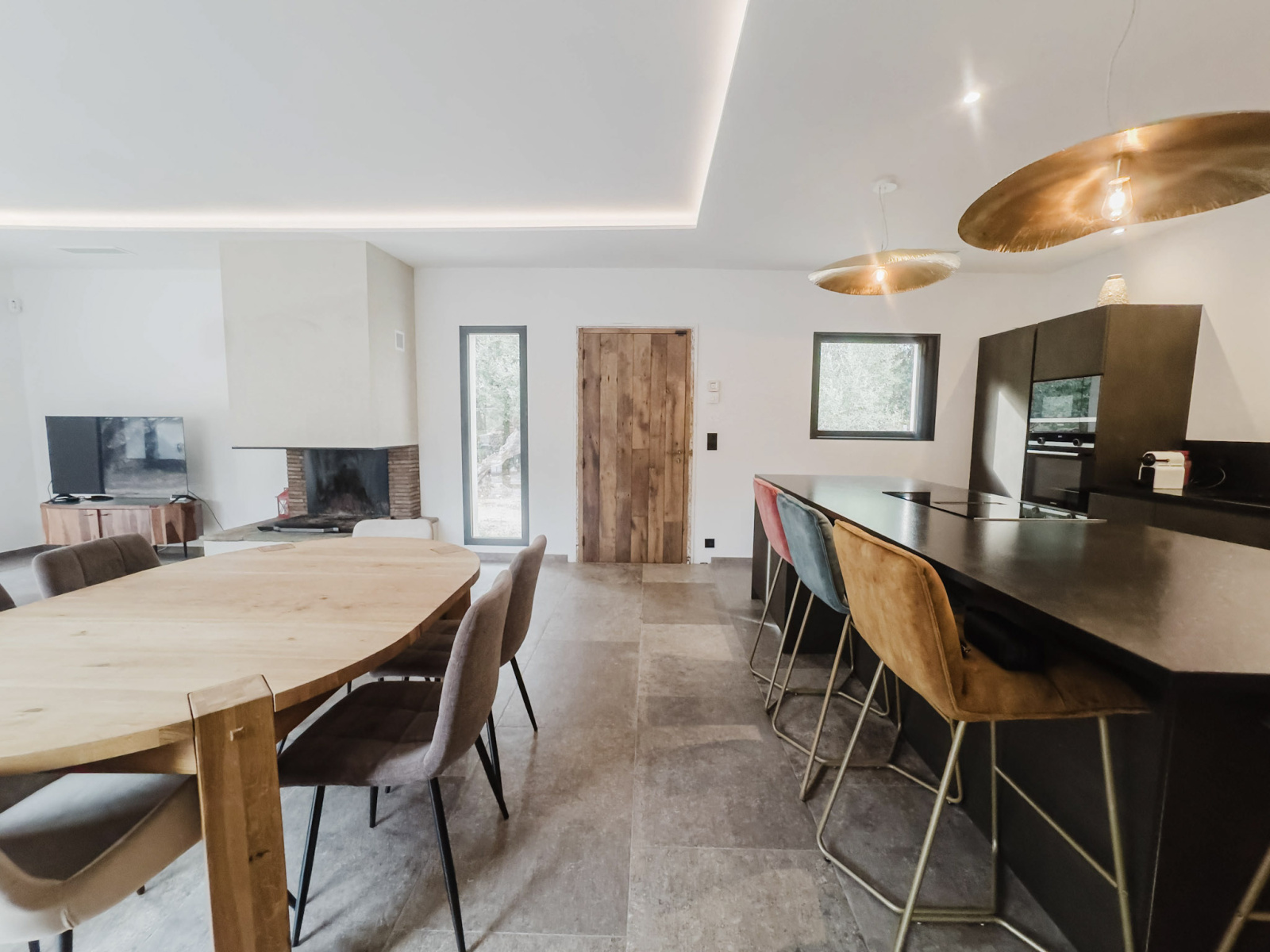 Bonifacio (20169)À cinq minutes des commodités et du port de Bonifacio, au cœur de la campagne bonifacienne, secteur Padurella, découvrez cette villa récente et lumineuse d’environ 130 m² édifiée de plain-pied sur un terrain plat et entièrement clos de 1 276 m². Elle propose un vaste espace de vie avec cuisine ouverte et cellier/buanderie, prolongé par de grandes baies vitrées à galandage et une cheminée à foyer ouvert, assurant confort et convivialité toute l’année. L’espace nuit dessert une suite parentale avec salle d’eau privative et dressing, deux chambres supplémentaires et une salle de bains. Toutes les pièces s’ouvrent sur l’extérieur, vers une superbe terrasse en ipé d’environ 70 m² et une terrasse couverte d’environ 12 m², exposées Sud, idéal pour profiter de la quiétude du maquis et des oliviers. De belle fabrique, réalisée avec des matériaux de qualité, cette villa offre un standing haut de gamme avec climatisation gainable, cuisine équipée avec plan de travail en pierre, volets roulants électriques, alarme et parement pierre qui signe le cachet de la maison, alliant tradition et modernité. Le terrain est arboré d’oliviers séculaires et est partiellement entouré de murs en pierre calcaire, offrant un cadre authentique dans un environnement calme et isolé, tout en restant proche de Bonifacio et des plages. Achevée en 2024 elle bénéficie de la garantie décennale.