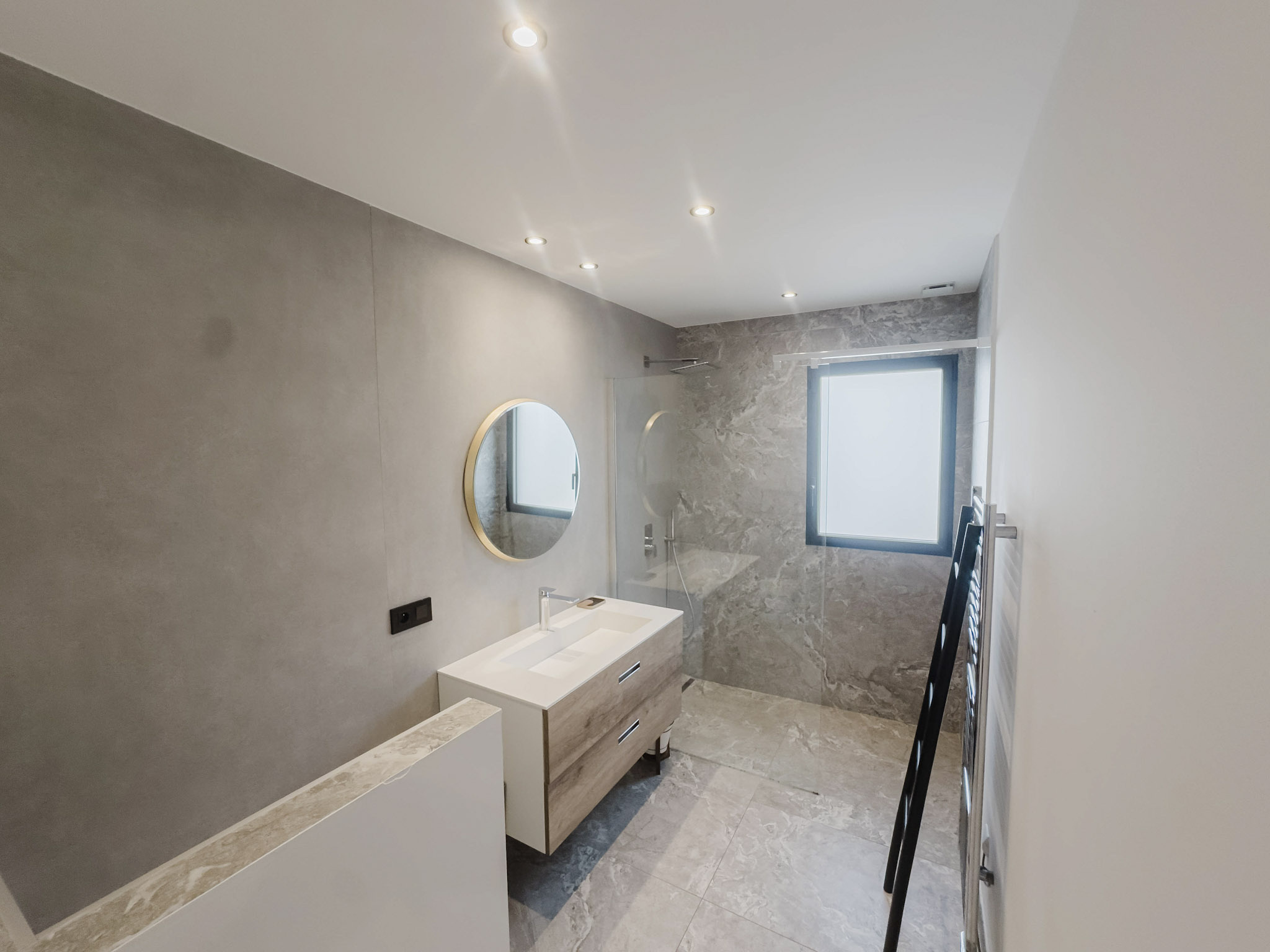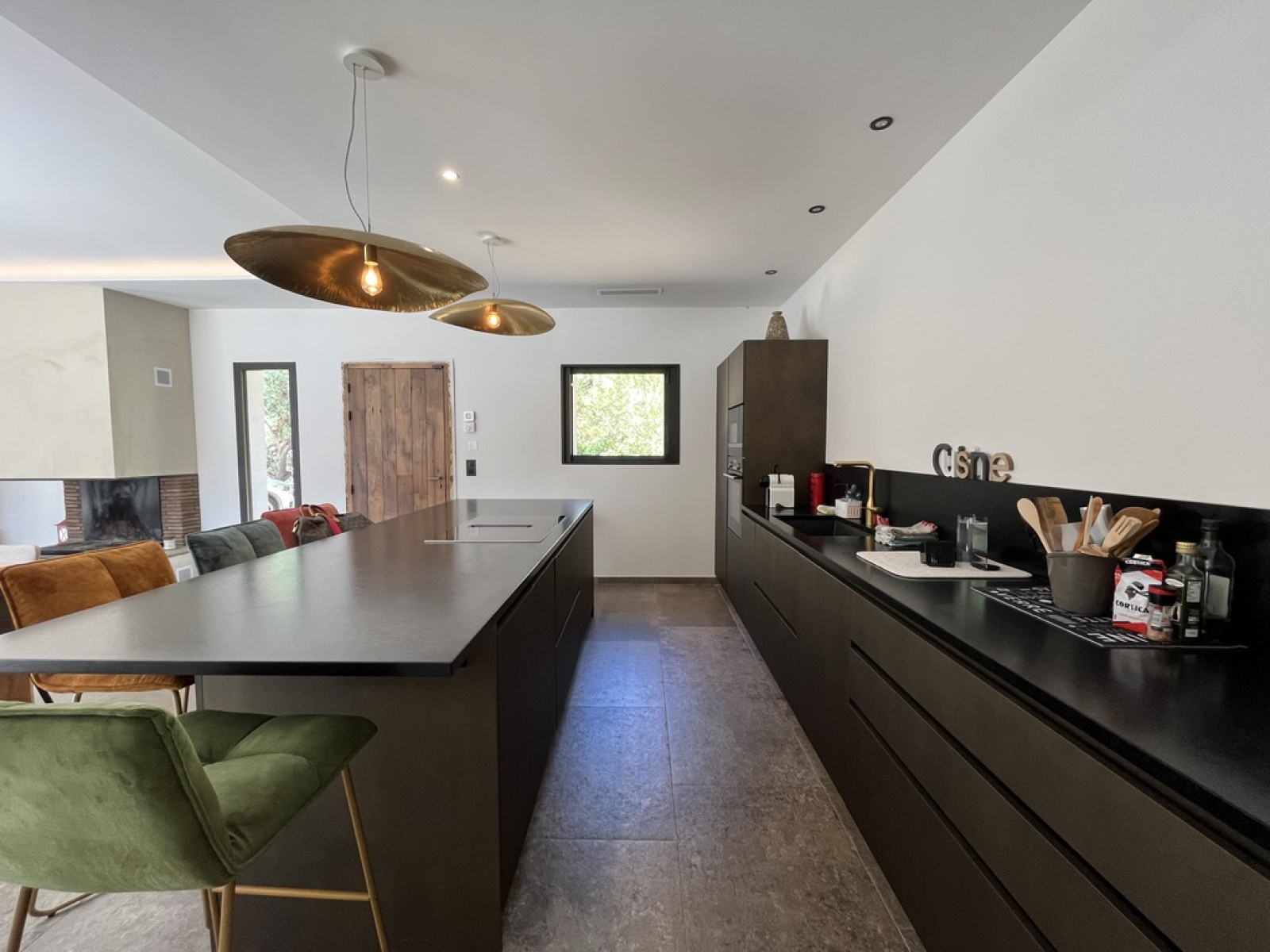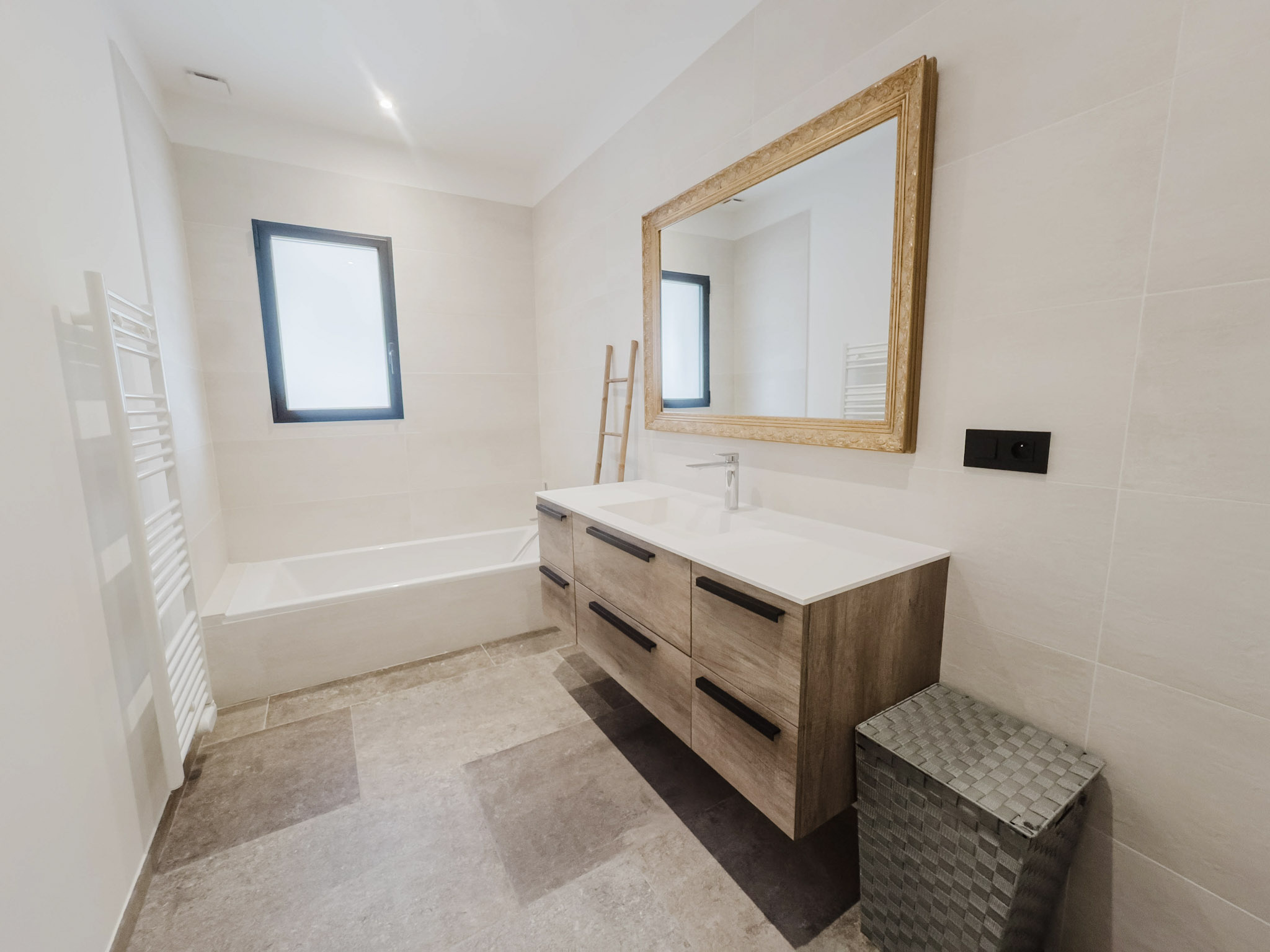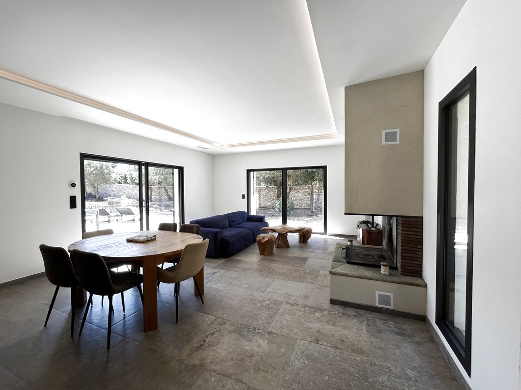 Bonifacio (20169)À cinq minutes des commodités et du port de Bonifacio, au cœur de la campagne bonifacienne, secteur Padurella, découvrez cette villa récente et lumineuse d’environ 130 m² édifiée de plain-pied sur un terrain plat et entièrement clos de 1 276 m². Elle propose un vaste espace de vie avec cuisine ouverte et cellier/buanderie, prolongé par de grandes baies vitrées à galandage et une cheminée à foyer ouvert, assurant confort et convivialité toute l’année. L’espace nuit dessert une suite parentale avec salle d’eau privative et dressing, deux chambres supplémentaires et une salle de bains. Toutes les pièces s’ouvrent sur l’extérieur, vers une superbe terrasse en ipé d’environ 70 m² et une terrasse couverte d’environ 12 m², exposées Sud, idéal pour profiter de la quiétude du maquis et des oliviers. De belle fabrique, réalisée avec des matériaux de qualité, cette villa offre un standing haut de gamme avec climatisation gainable, cuisine équipée avec plan de travail en pierre, volets roulants électriques, alarme et parement pierre qui signe le cachet de la maison, alliant tradition et modernité. Le terrain est arboré d’oliviers séculaires et est partiellement entouré de murs en pierre calcaire, offrant un cadre authentique dans un environnement calme et isolé, tout en restant proche de Bonifacio et des plages. Achevée en 2024 elle bénéficie de la garantie décennale.