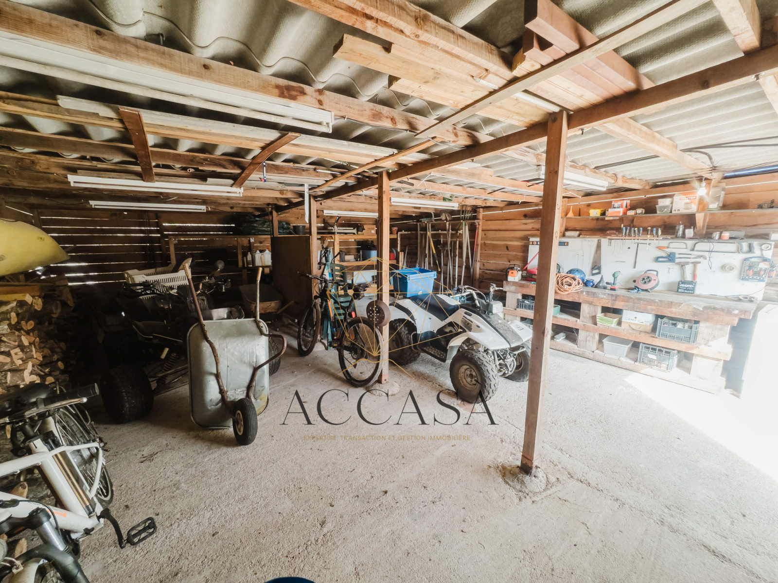 La maison principale offre un salon avec cheminée et climatisation, une cuisine indépendante prolongée par un cellier, deux chambres, une salle de bain, une véranda et un vaste garage. Une terrasse exposée Sud partiellement couverte et une cuisine extérieure permettent de profiter pleinement du cadre enchanteur de ce bien. La dépendance, récente et de plain-pied, habillée de pierres dispose d’un séjour climatisé avec cuisine, d’une chambre et d’une salle d’eau. Ces deux unités distinctes permettent d’accueillir famille, amis ou de générer un revenu locatif saisonnier. Un atelier en bois de 47 m² offre un vaste espace de stockage.
