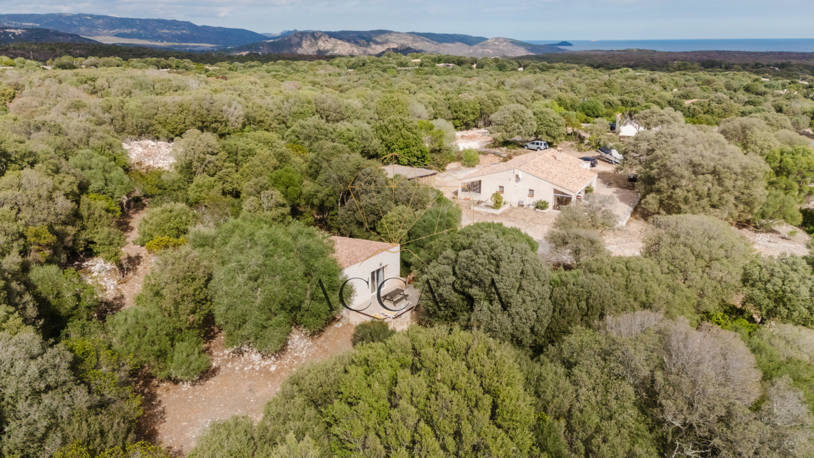 Propriété au calme avec grand terrain constructible à 5 min de la plage de Canetto
