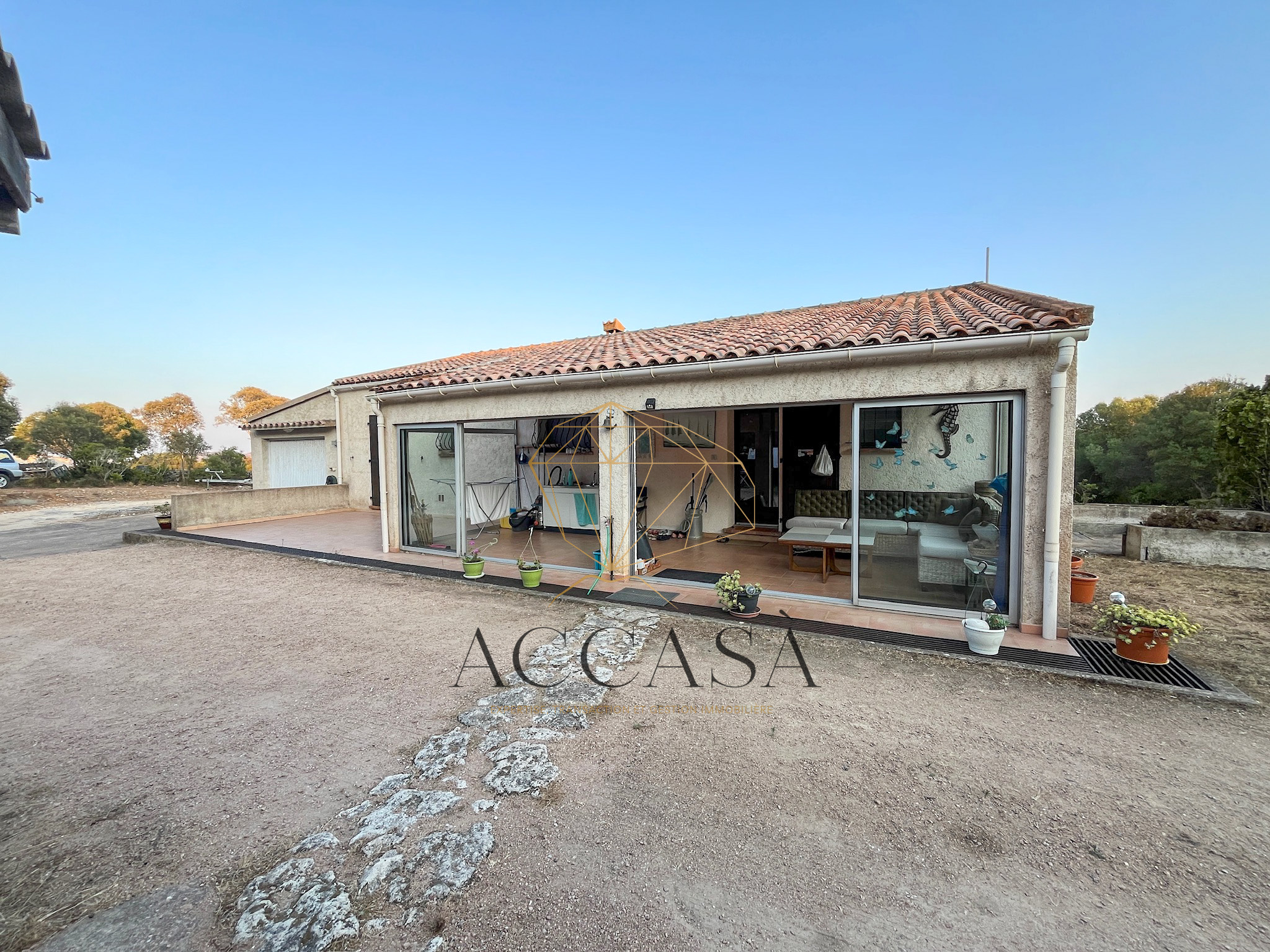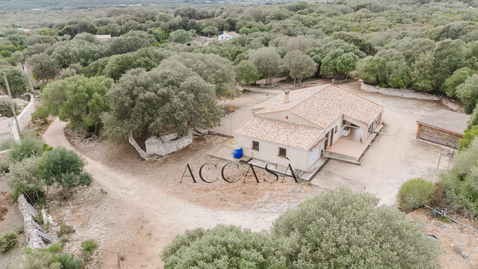 Bonifacio (20169)Accasà vous propose, au cœur d’un environnement naturel préservé, une propriété rare à 10 minutes du port de Bonifacio et 5 min de la plage de Canetto. L’ensemble se compose d’une maison principale de 103 m² et d’une dépendance de 38 m², édifiées sur un vaste terrain arboré de plus de 8 000 m² planté d’oliviers et bordé de murs en pierres. Ce cadre paisible séduit par son atmosphère authentique et la qualité de son environnement, loin de toute nuisance.