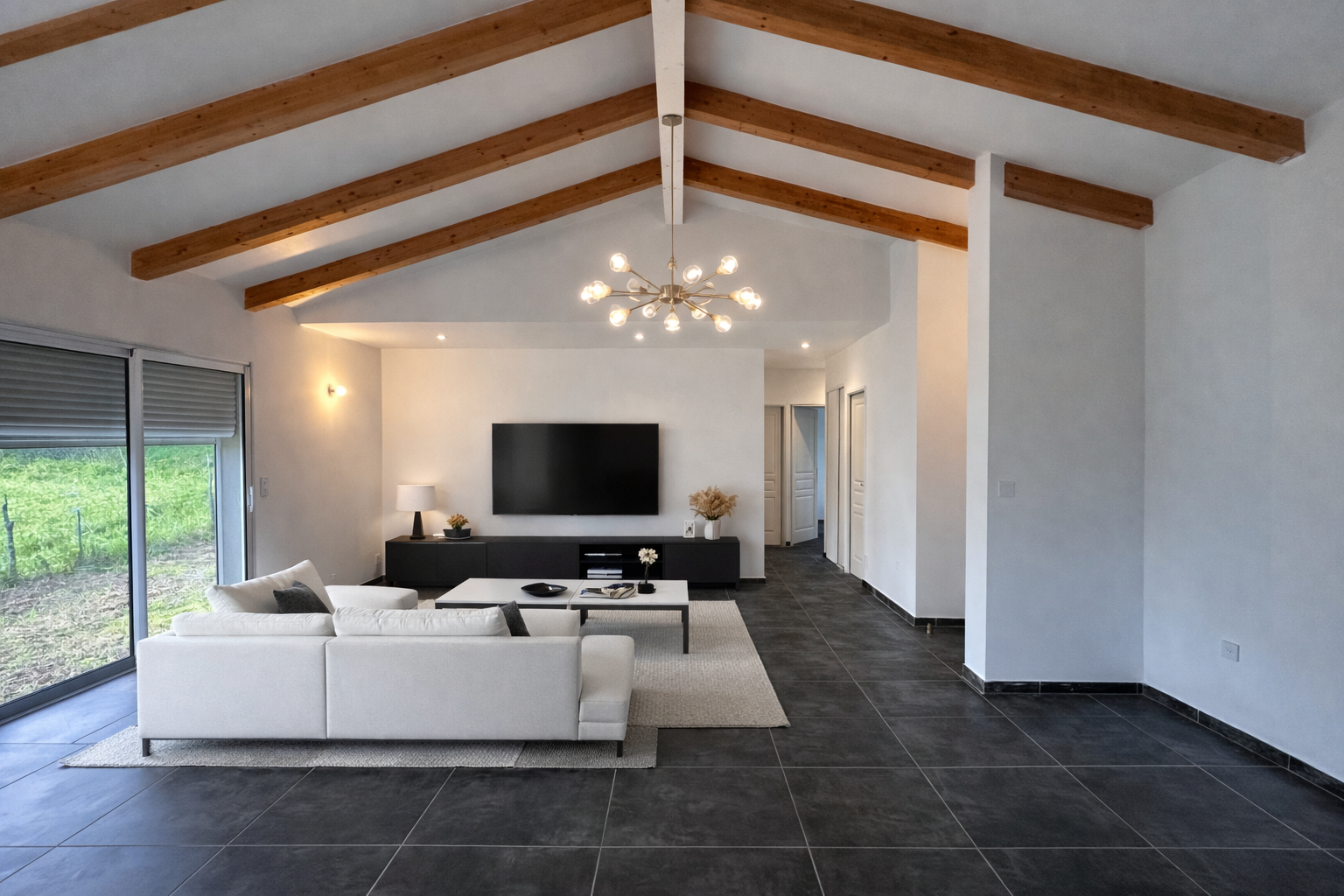 Une terrasse couverte exposée Est complète l’ensemble et permet de profiter pleinement des extérieurs.