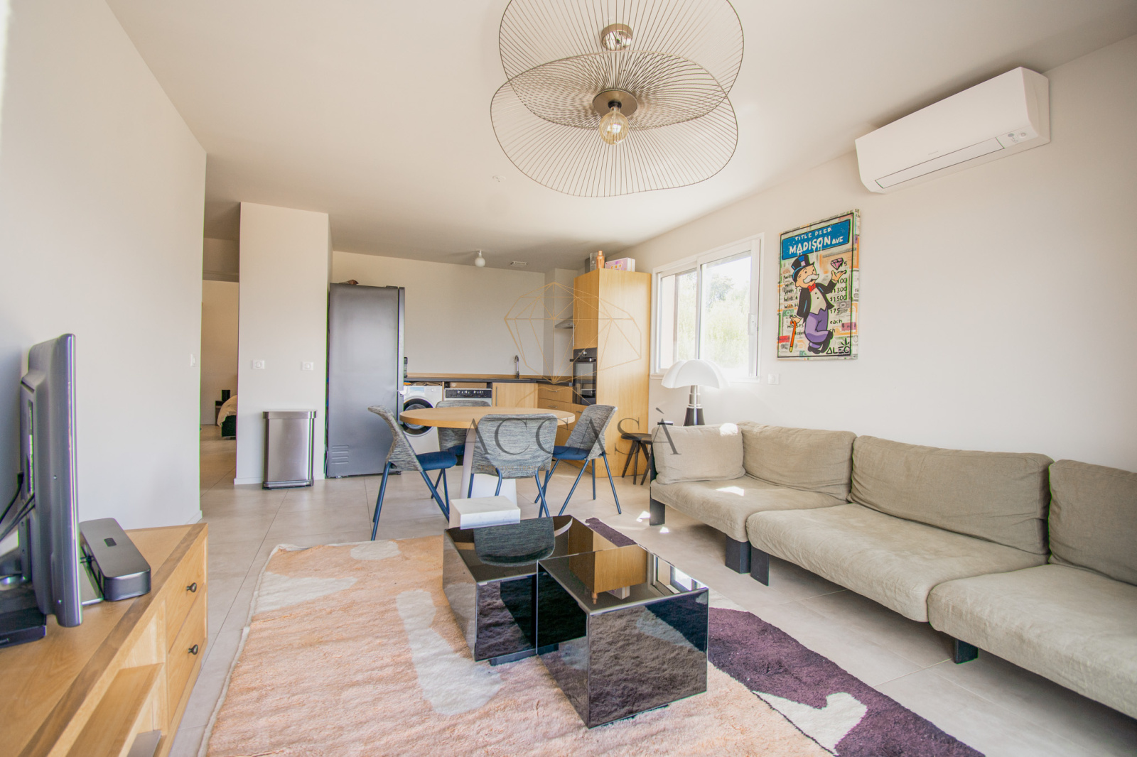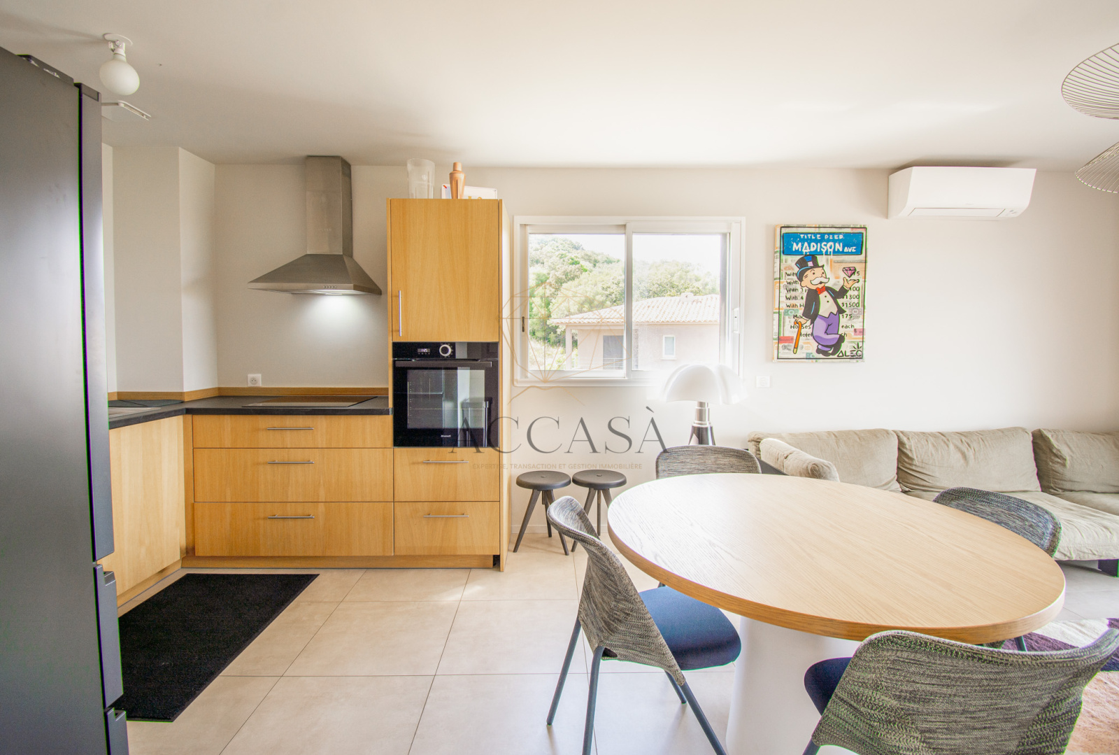 Toutes les pièces sont équipées de la climatisation réversible et de volets électriques pour un confort optimal. Les chambres bénéficient de placards en bois, et la cuisine est entièrement équipée. L'appartement est vendu entièrement meublé, avec du mobilier de qualité en parfait état.