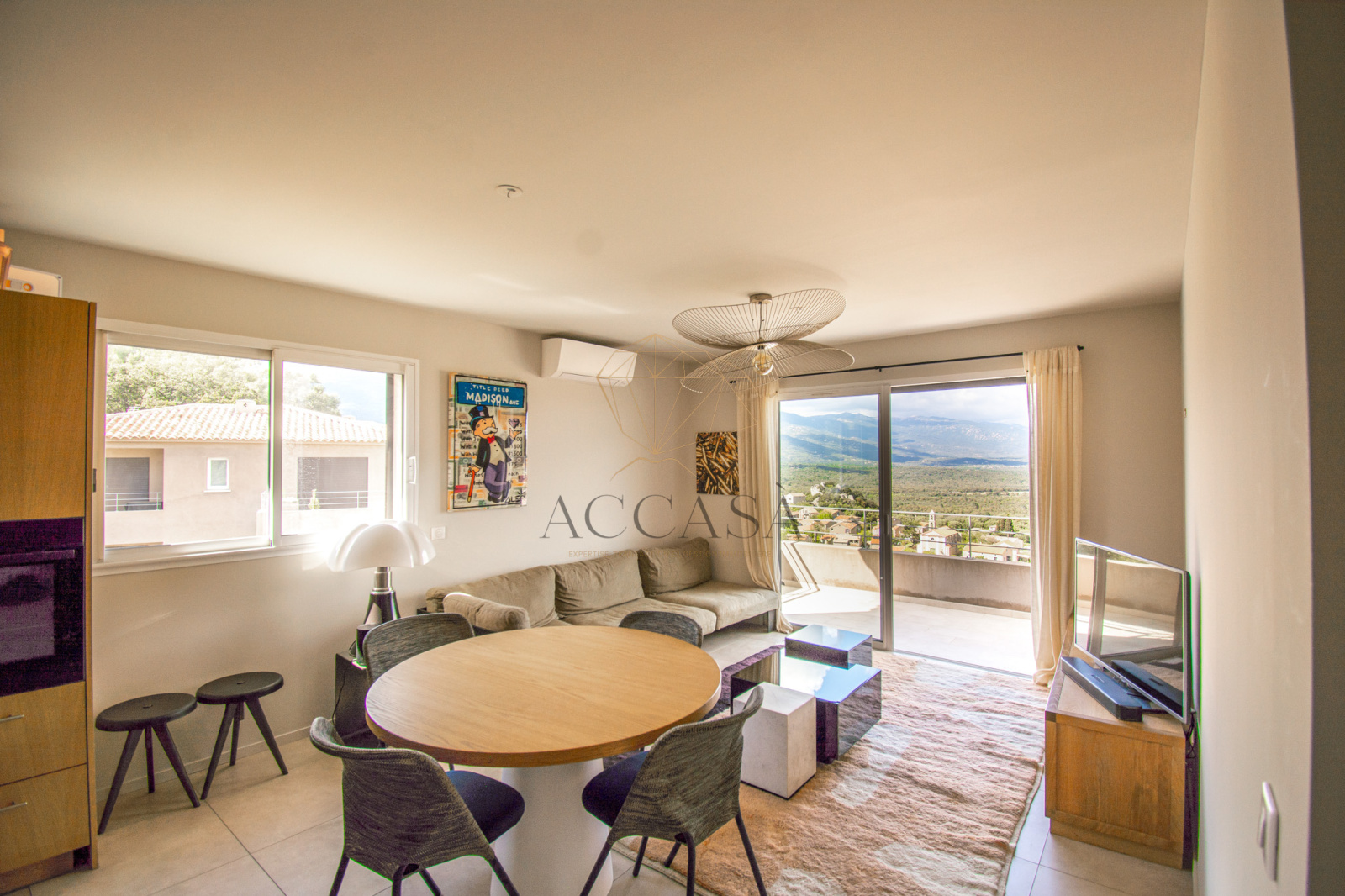 Sotta (20146)Situé dans une charmante copropriété comprenant 5 bâtiments avec 48 logements, cet appartement de type T3 offre un cadre idéal à proximité immédiate du village de Sotta. Avec une superficie de 65,17m², il occupe le dernier étage, offrant ainsi une vue imprenable sur la montagne, le vieux village et la baie de Porto-Vecchio depuis sa terrasse de 17,14 m² .
