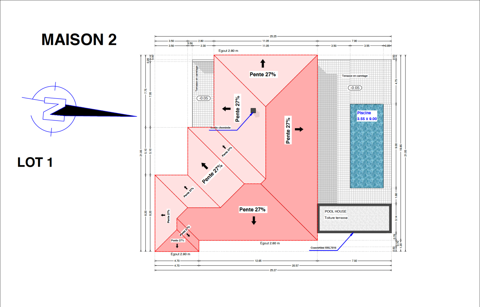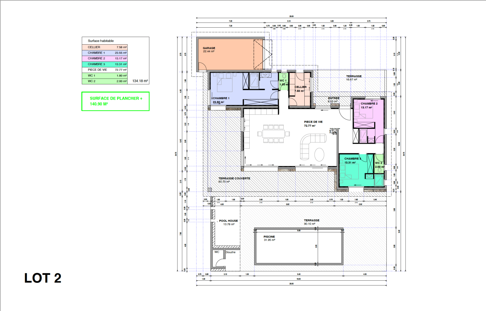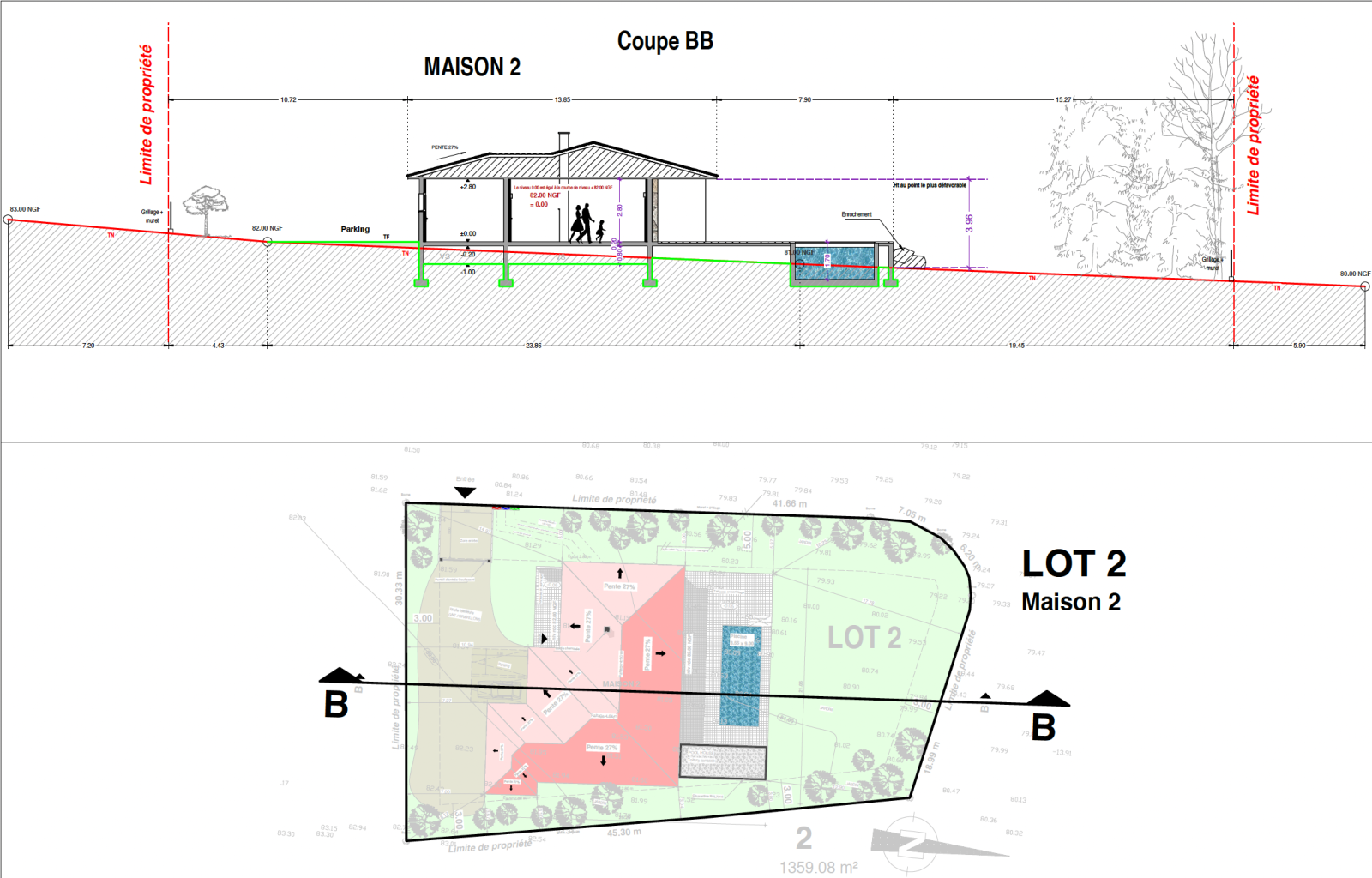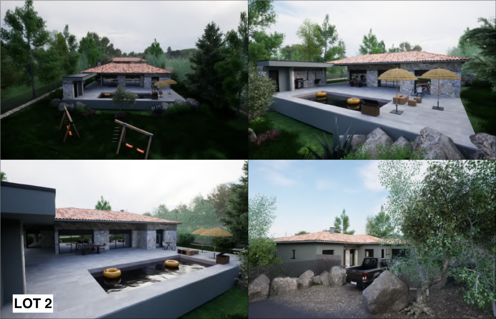 - lot 2 d'une surface de 1360 m² avec villa de 134 m2 habitables+ piscine de 9x3,55 m