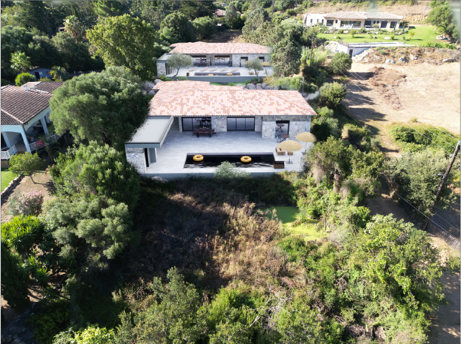 Figari (20114)Situé en retrait du hameau de Tarabucceta, avec vue sur la montagne de Cagna, à proximité des vignes des domaines viticoles voisins, beau terrain plat de 2633 m² vendu avec PCVD (permis de construire valant division parcellaire) accordé et purgé de tous recours pour la construction de 2 villas avec piscine: