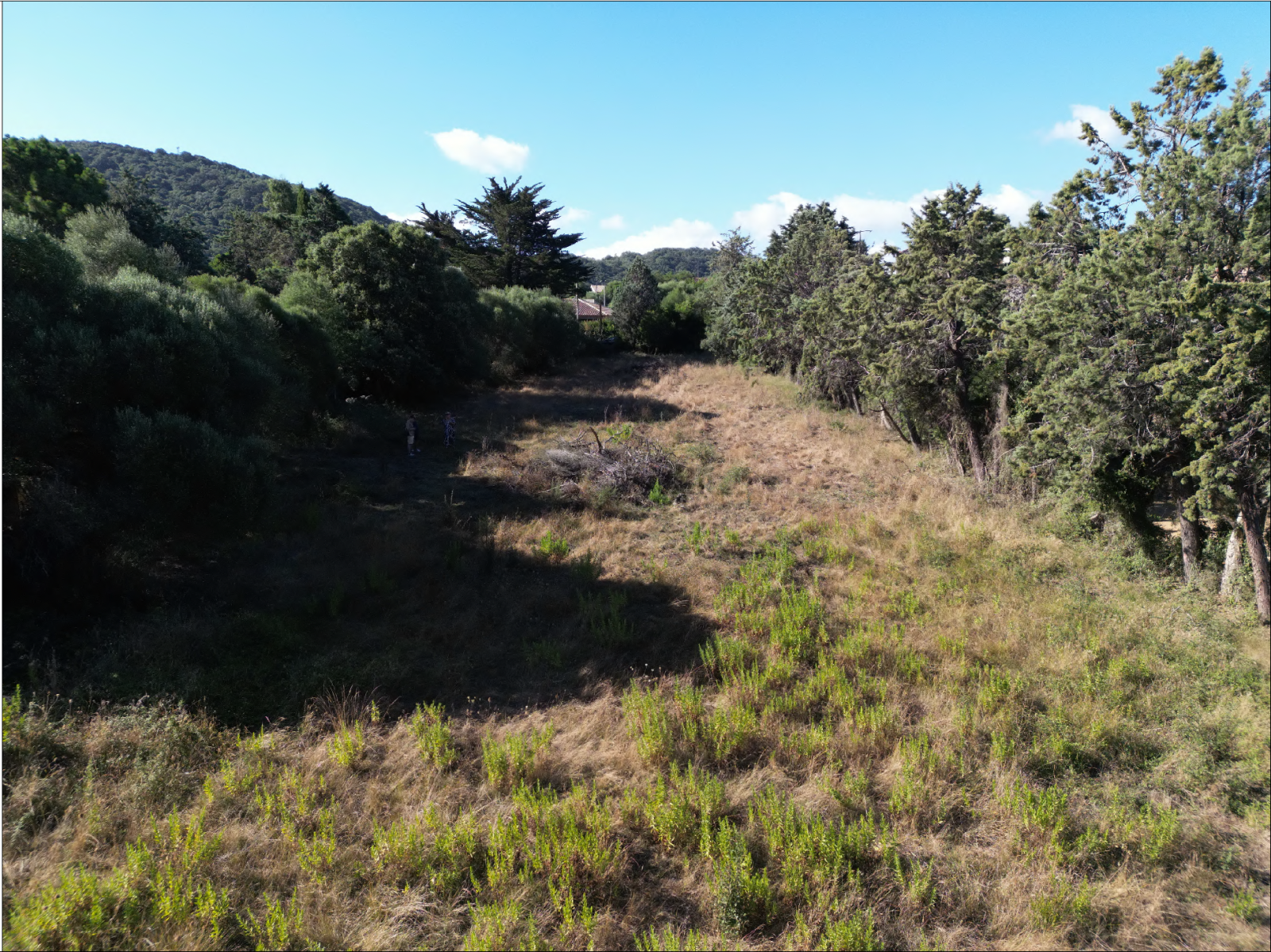 Le terrain présente des arbres de belles hauteurs comme de vieux chênes, de vieux oliviers ainsi qu'un maquis de faible hauteur, devenant plus dense sur la périphérie.
