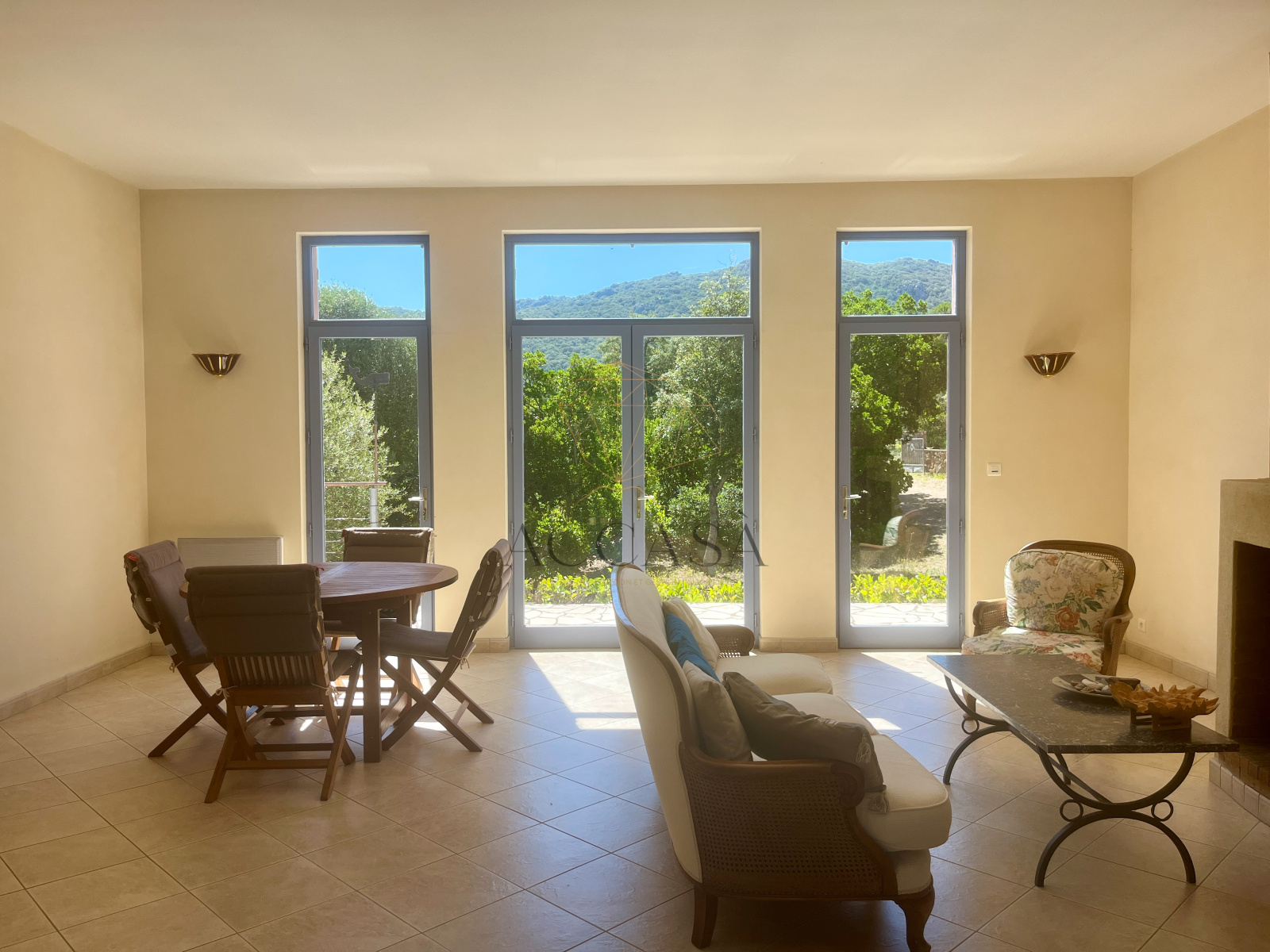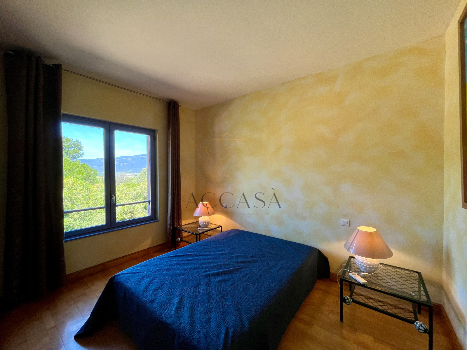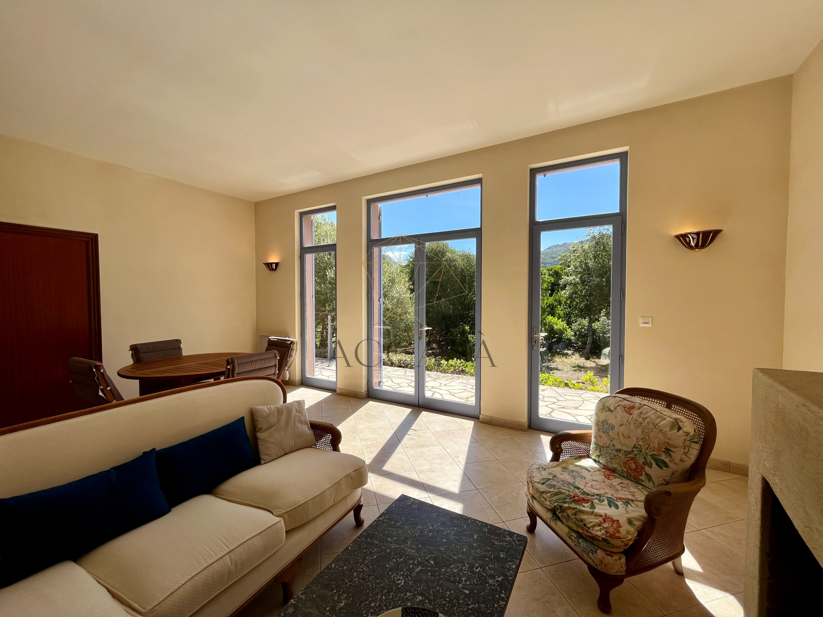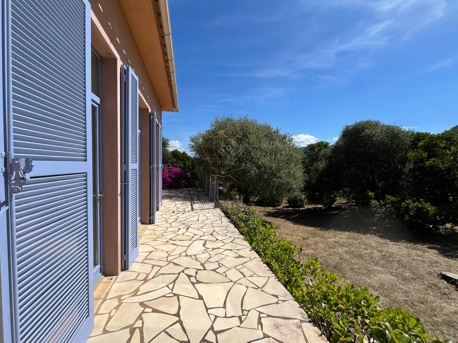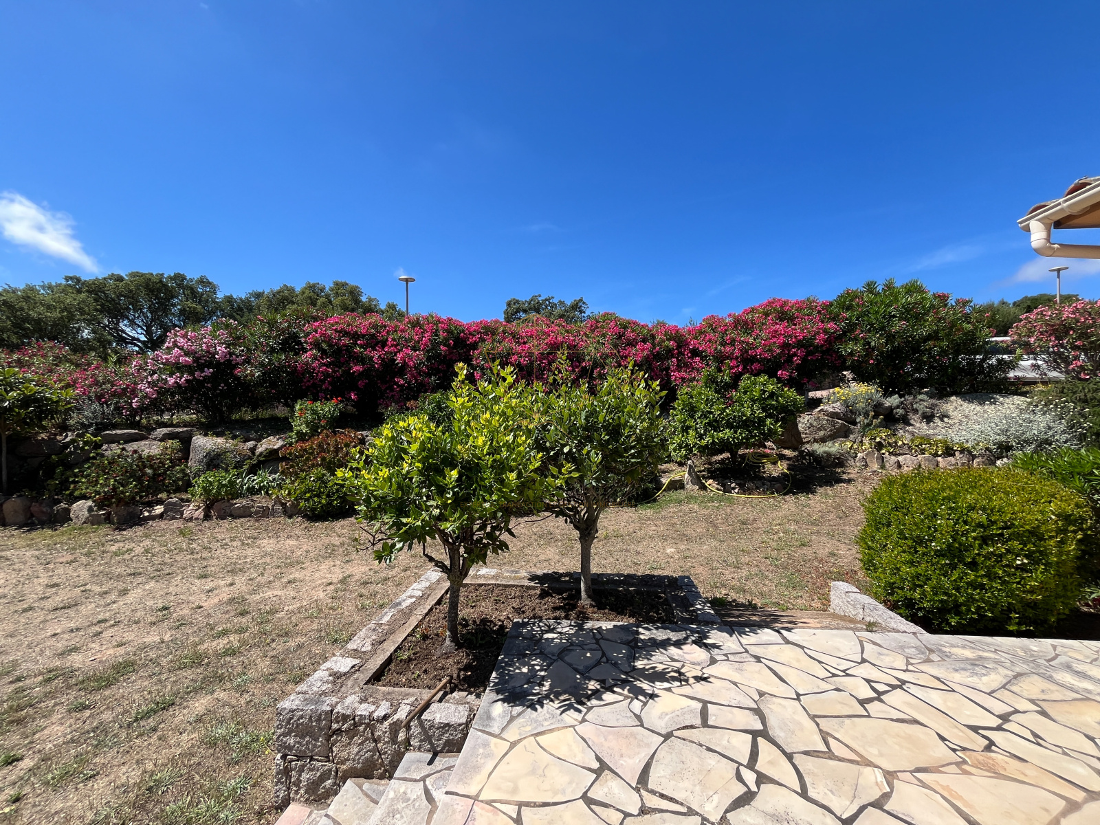 Le terrain, planté d'oliviers, d'arbousiers, d'agrumes et de chênes, assure intimité et tranquillité avec une vue magnifique sur l'Omu di Cagna, le tout sans vis-a-vis. La propriété est raccordée au tout-à-l'égout et offre la possibilité d'ajouter une piscine.
