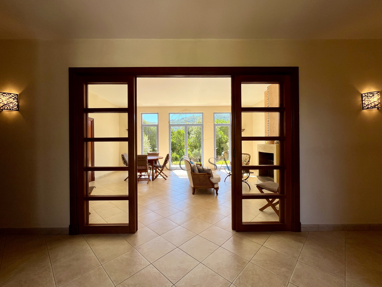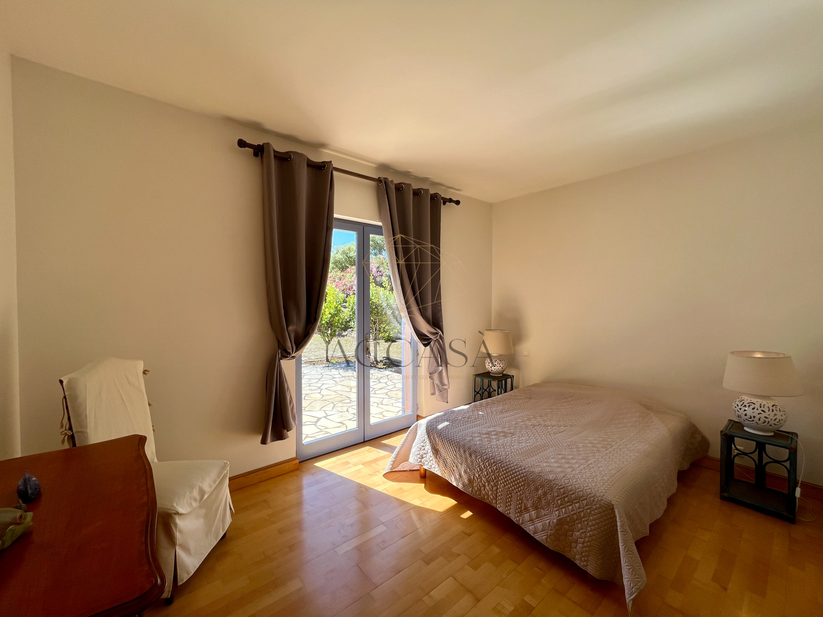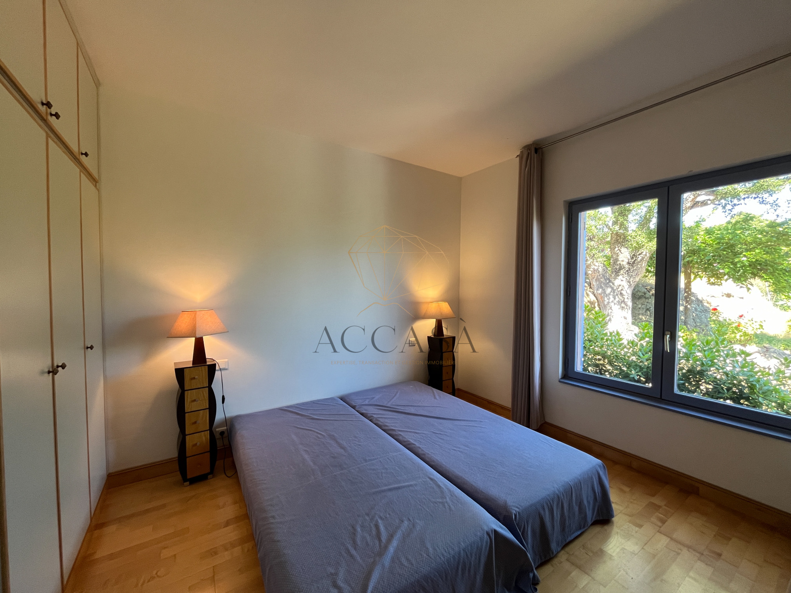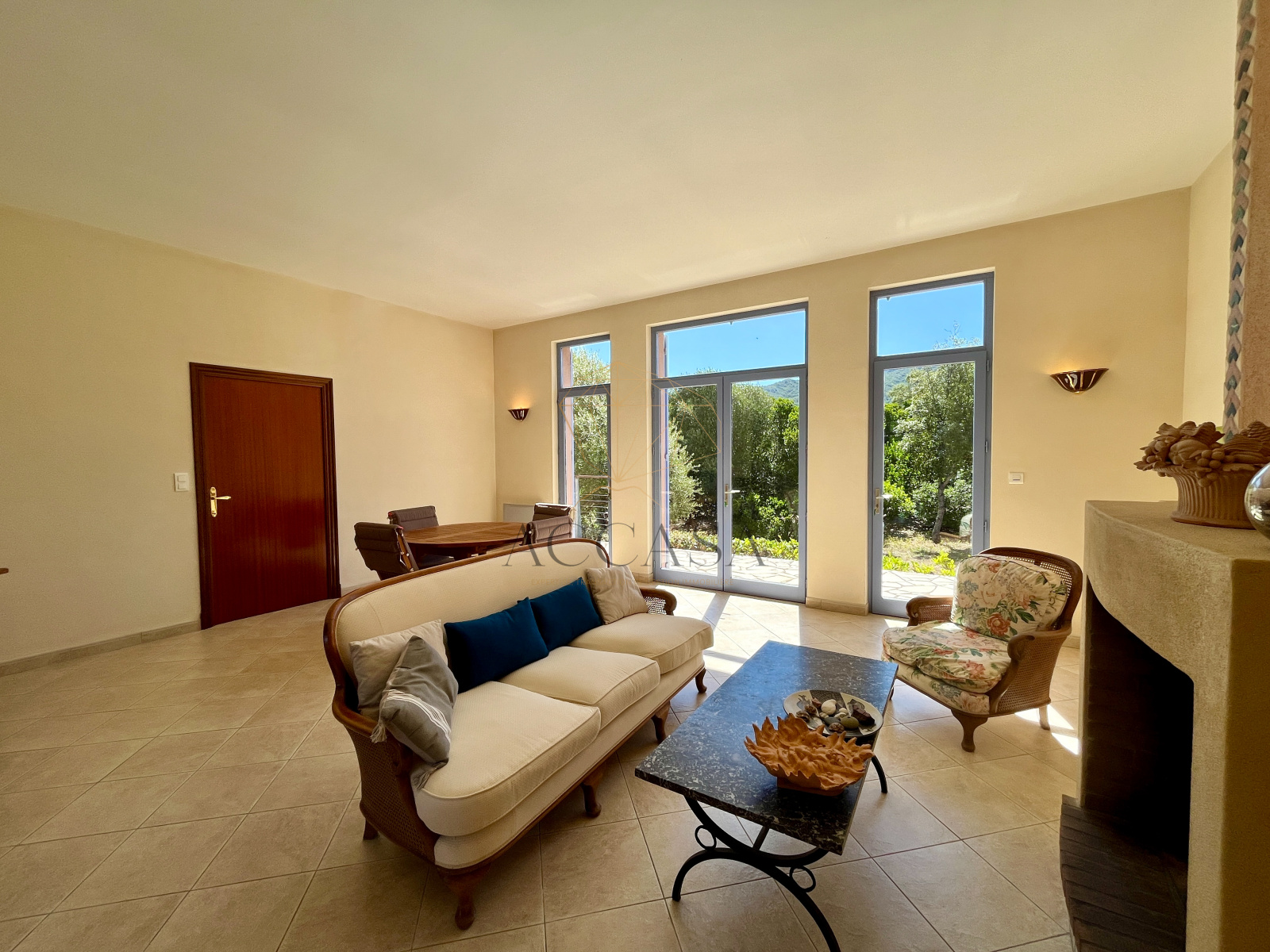 Le terrain, planté d'oliviers, d'arbousiers, d'agrumes et de chênes, assure intimité et tranquillité avec une vue magnifique sur l'Omu di Cagna, le tout sans vis-a-vis. La propriété est raccordée au tout-à-l'égout et offre la possibilité d'ajouter une piscine.