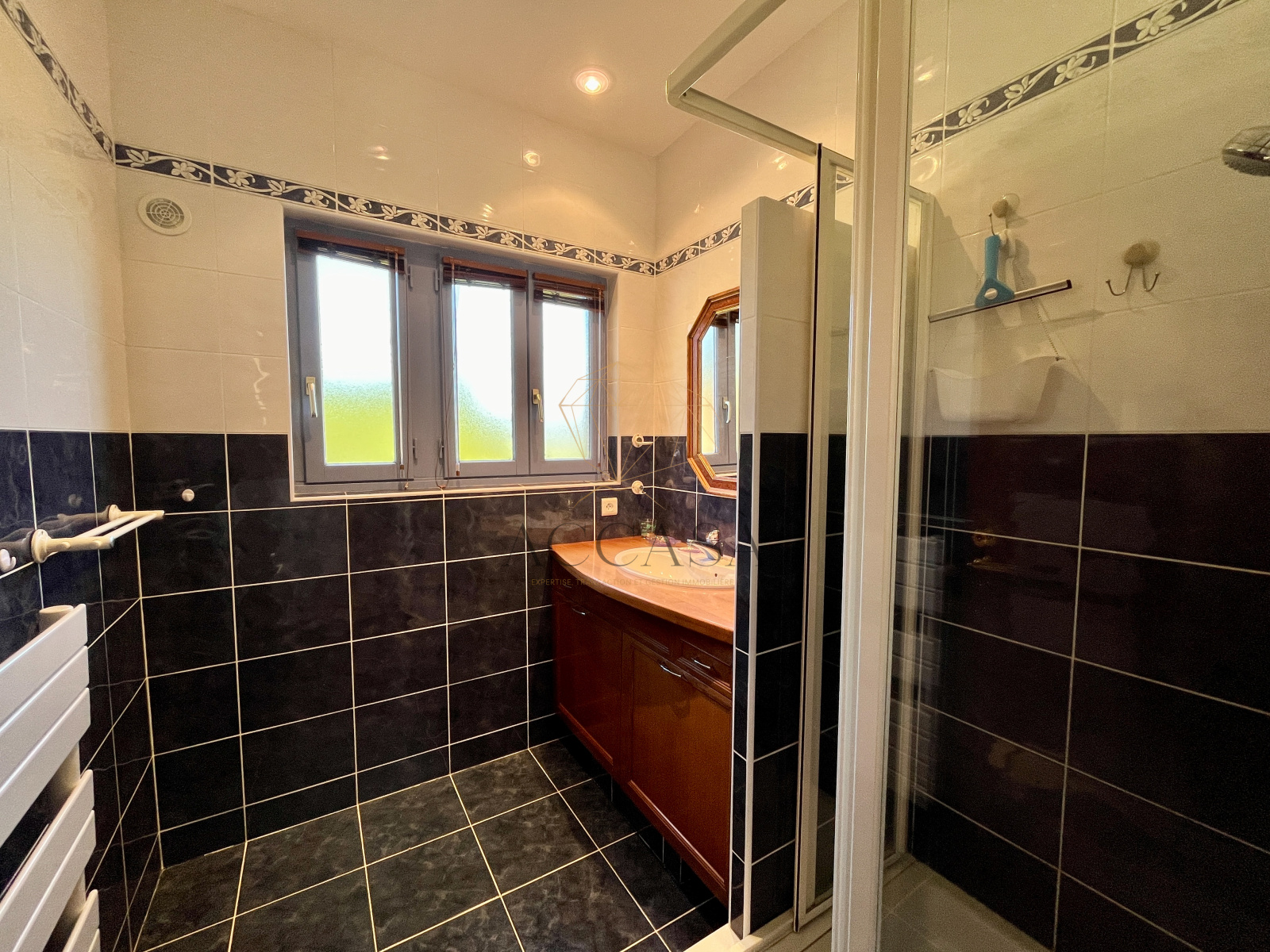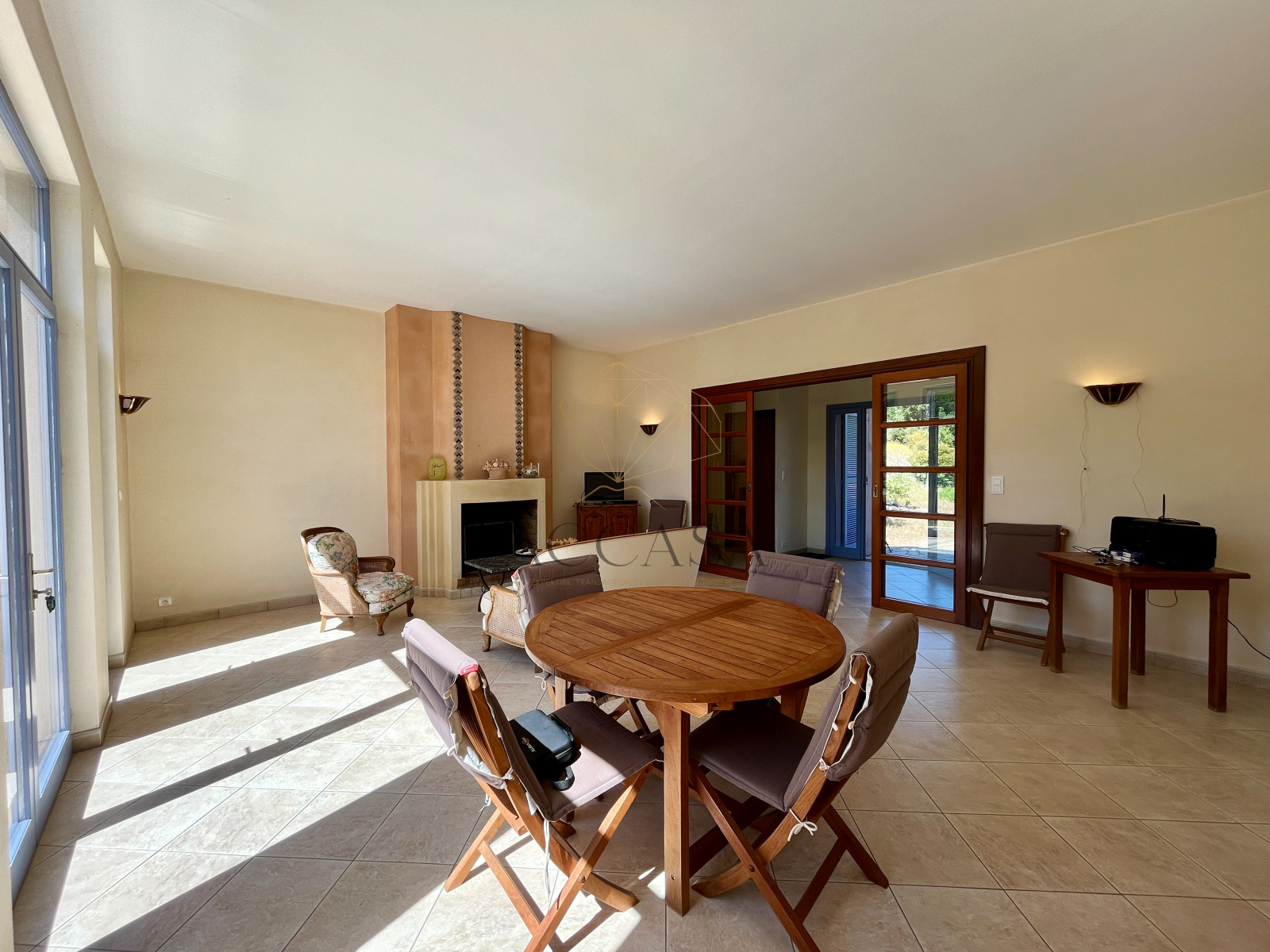 Équipée de double vitrage bois et de moustiquaires, la maison bénéficie également de climatisation réversible dans une chambre et le corridor, de radiateurs électriques dans le couloir et le salon et de sèches serviettes electriques dans la salle de bains et la salle d'eau. Edifiée sur un vide sanitaire accessible, cette maison est de très belle facture, parfaitement entretenue et très saine. La toiture en béton permet d'offrir une très belle hauteur sous plafond.