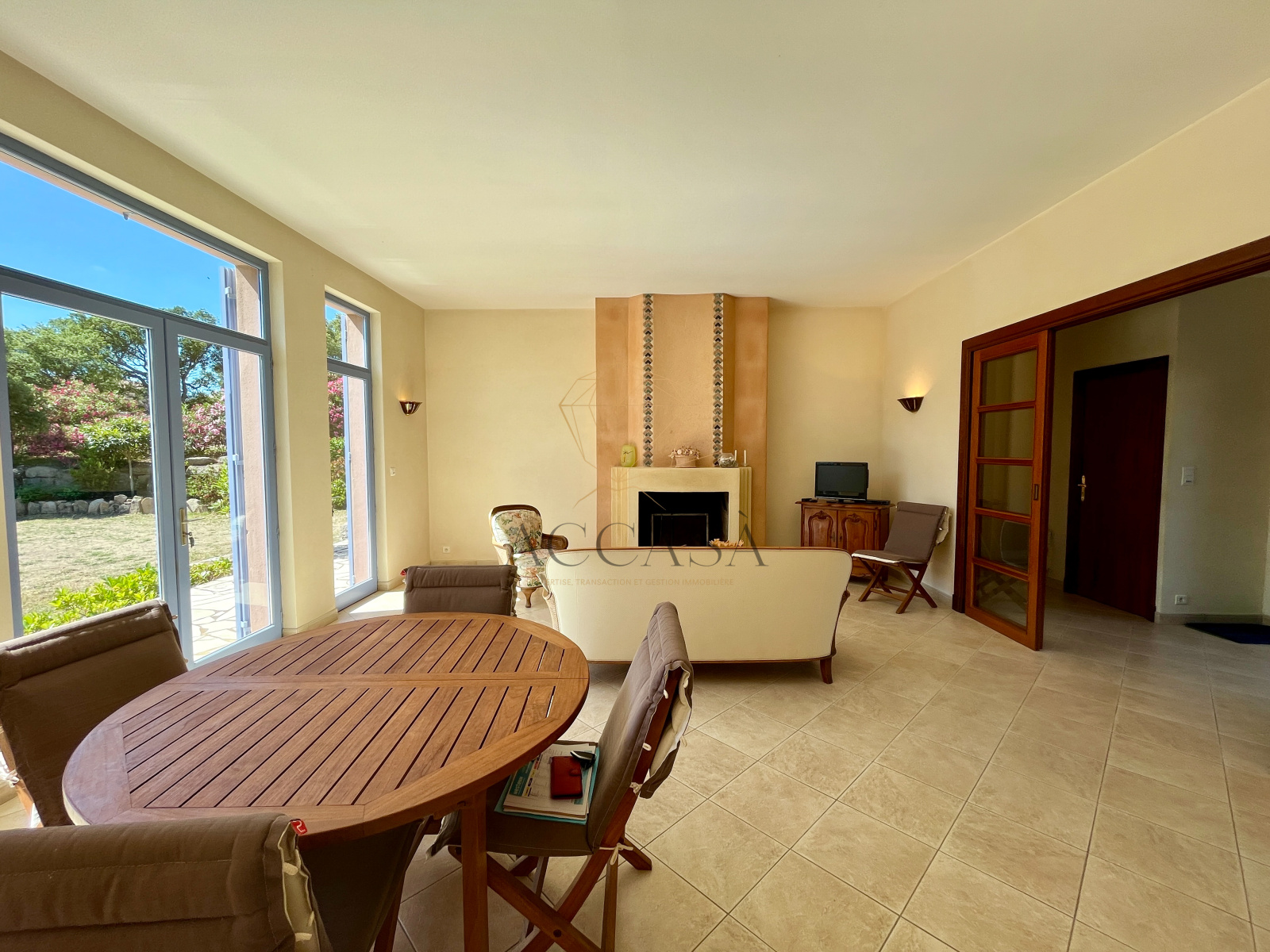 Figari (20114)Découvrez cette maison charmante située à Vignola, commune de Figari, édifiée en 1998 sur un terrain de 1395m². La propriété offre 108,36m² de surface habitable avec un garage de 26,75m². L'entrée ouvre sur un salon/séjour lumineux avec belle cheminée cheminée et accès à une grande terrasse, parfait pour des moments en plein air. La cuisine attenante à la salle à manger donne également sur la terrasse, elle est équipée et sa superficie permet d'y prendre les repas. La maison compte trois chambres, une salle d'eau, une salle de bains et un WC séparé. Le garage dispose d'un espace atelier et d'un WC, avec un accès pratique au vide sanitaire.
