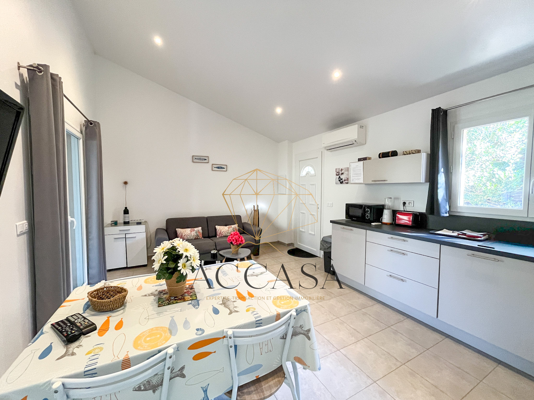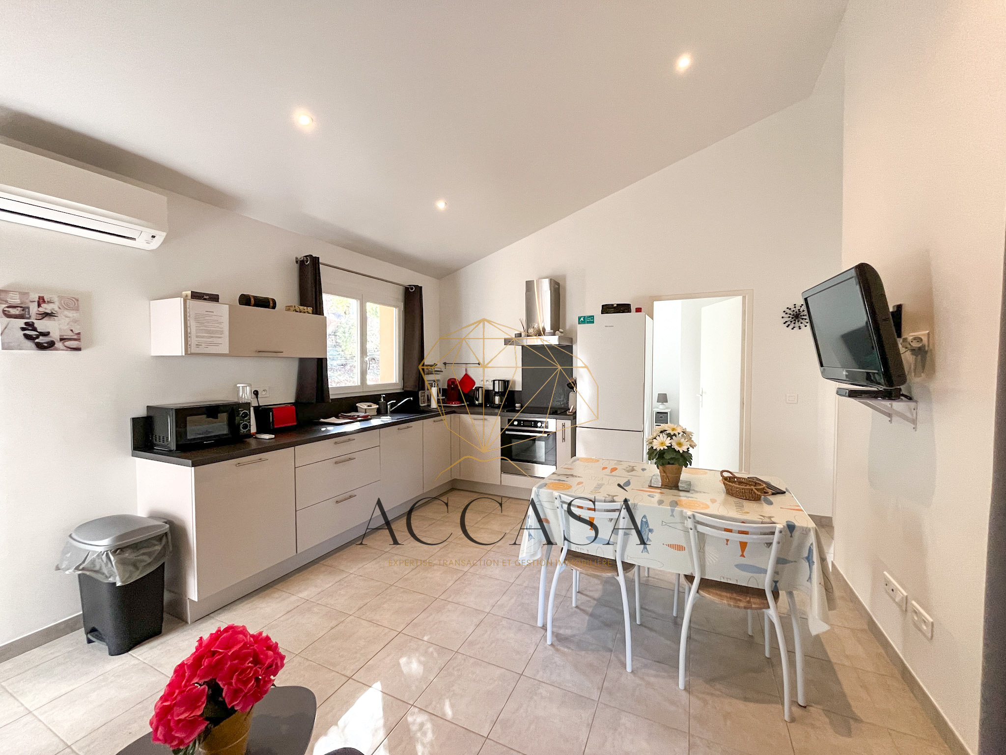 Édifiée en 2019, elle comprend un séjour/cuisine de 22 m², deux chambres avec placards, et une salle d’eau/WC.