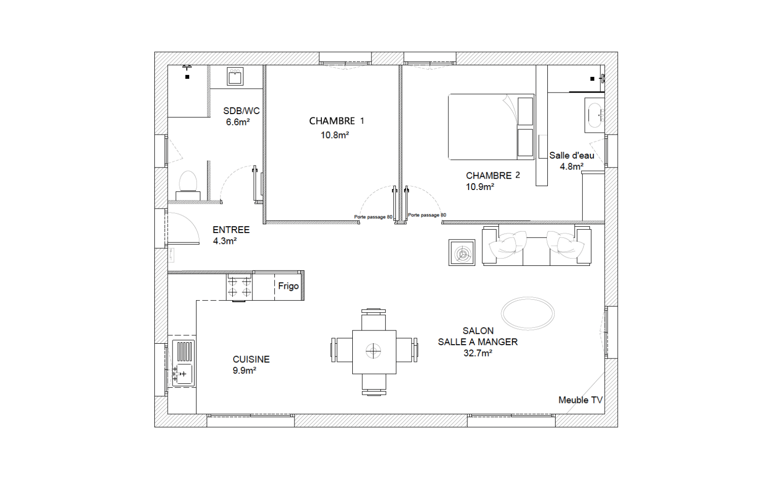La seconde maison, d’une superficie d’environ 80 m², constitue un logement indépendant. Les deux maisons disposent de leur propre intimité, avec une implantation pensée pour préserver les espaces de vie. Elle se compose d'une entrée, d'un espace de vie cuisine/salle à manger de 42 m², de deux chambres et d'une salle d'eau. Une terrasse permet de profiter en toute quiétude de l'extérieur.